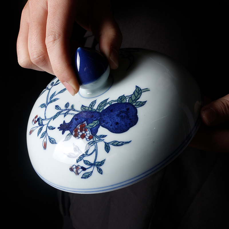 新中式 古典复古 陶瓷罐寿桃纹家居摆件玄关客厅博古架瓷罐景德镇