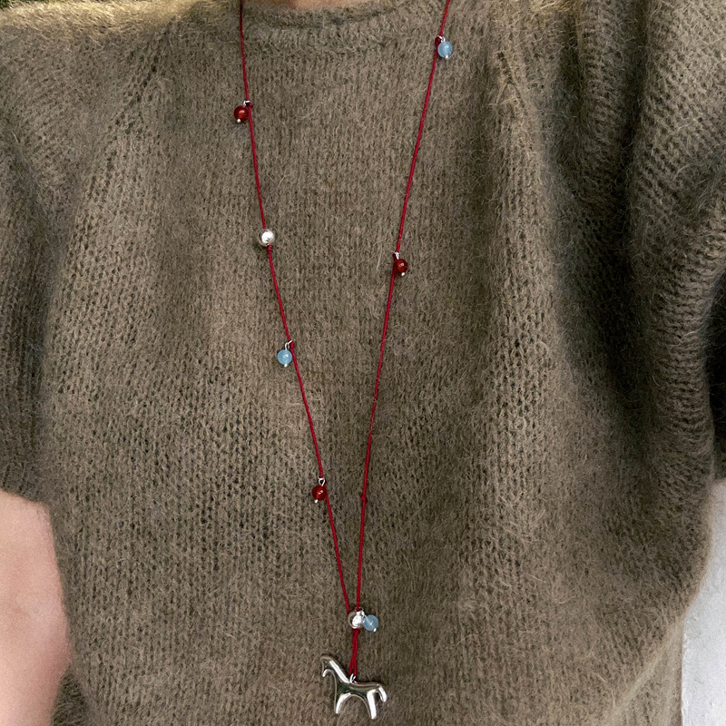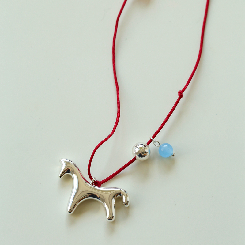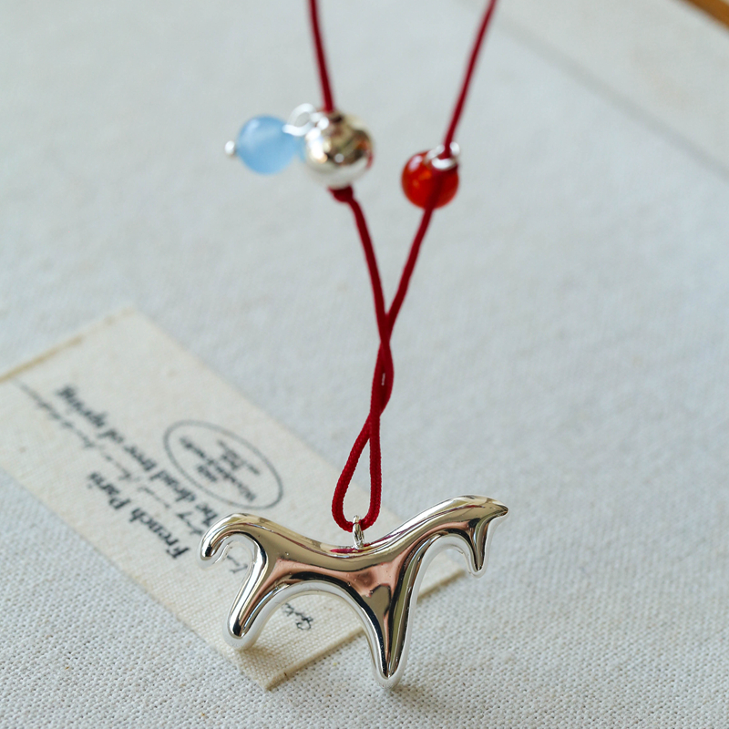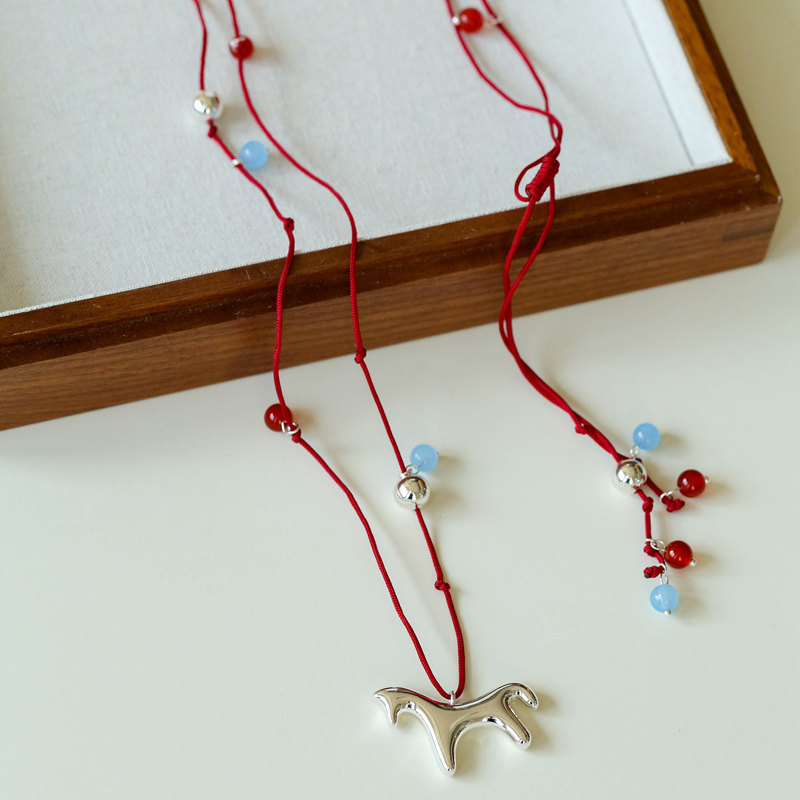 TU家小众设计高级感时髦小马造型红色编绳项链女新中式复古毛衣链