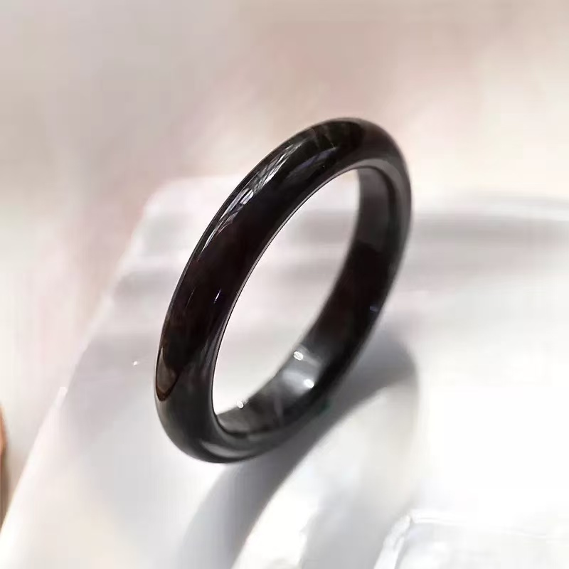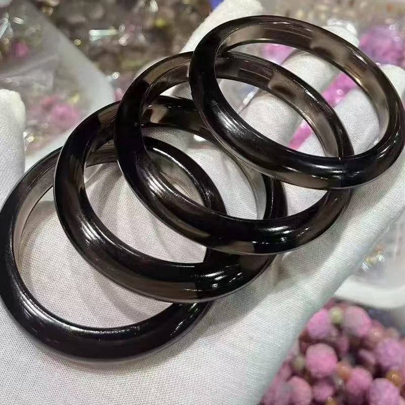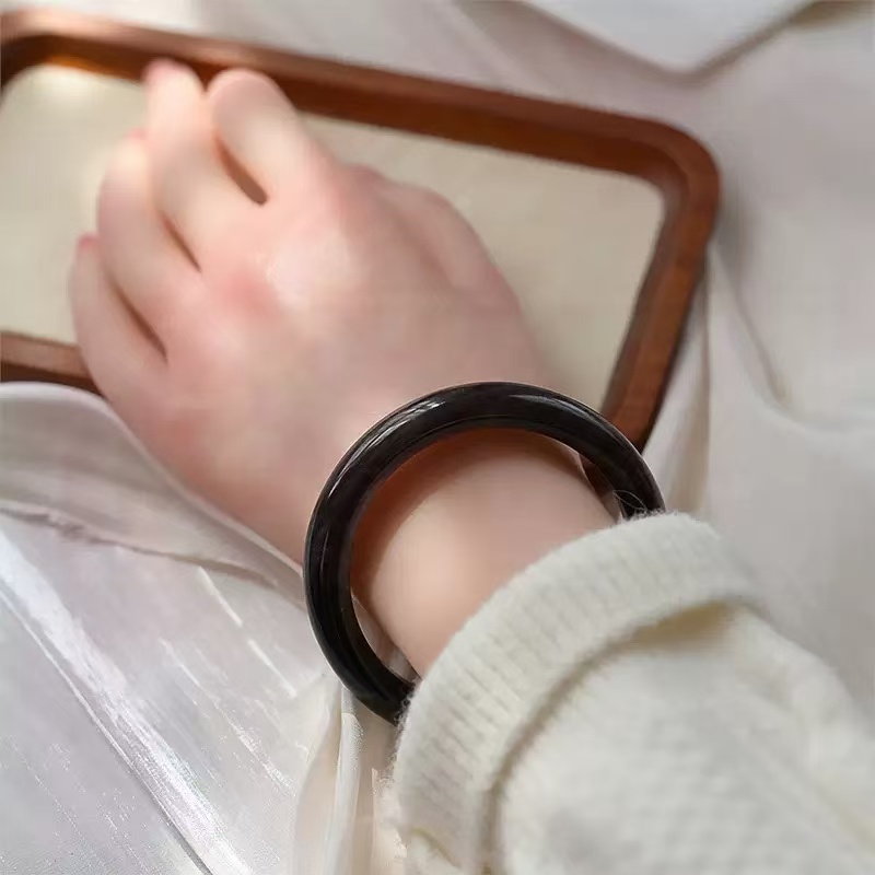 冰种黑曜石手镯乌金黑曜石镯子亮黑色玉镯新款水晶镯男闺蜜礼物