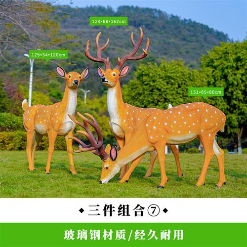 户外仿真梅花鹿雕塑玻璃钢售楼部庭院园林草坪景观公园麋鹿大摆件