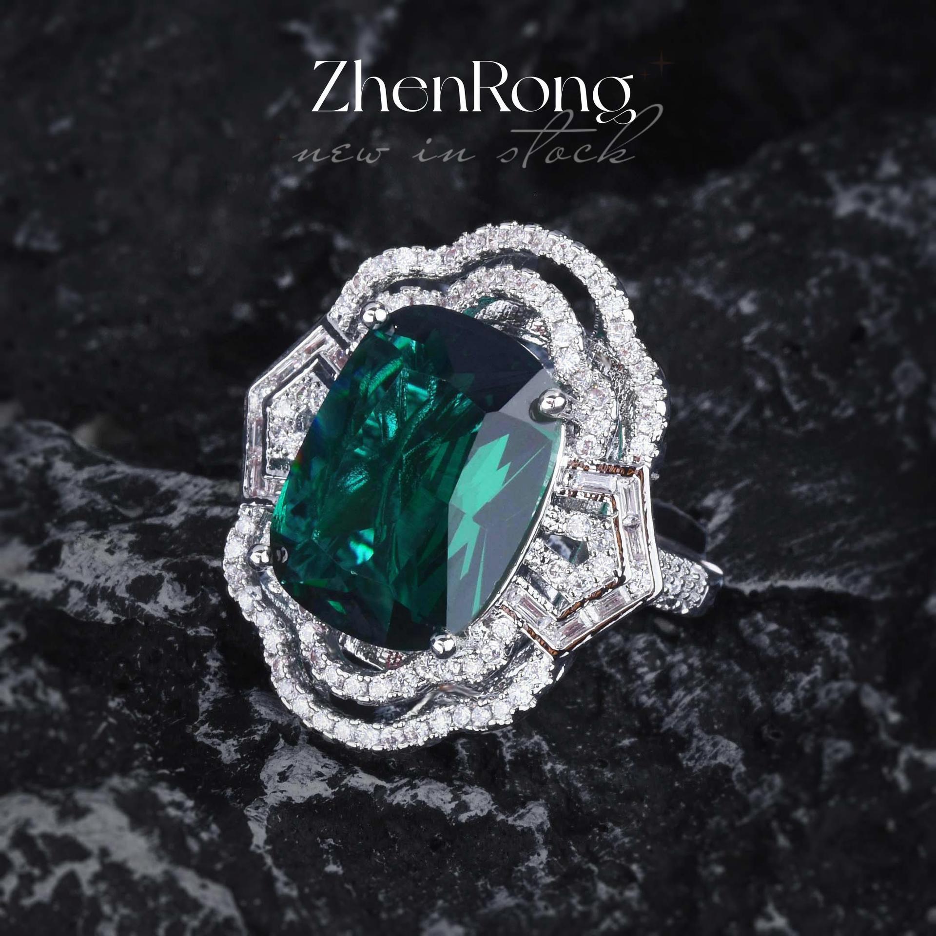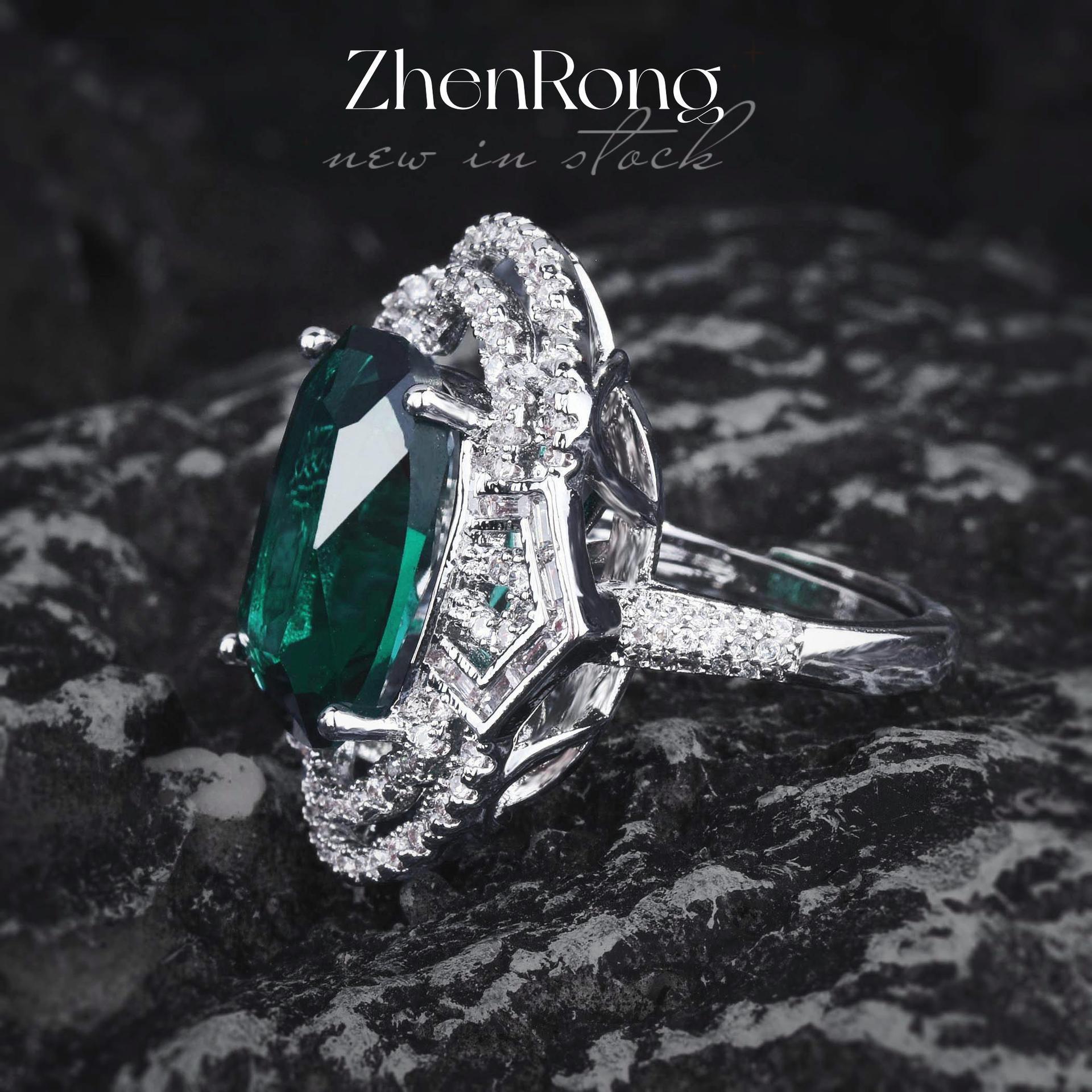 Young高定珠宝设计绿钻戒指女简约时尚ins梦缘花间祖母绿食指戒子