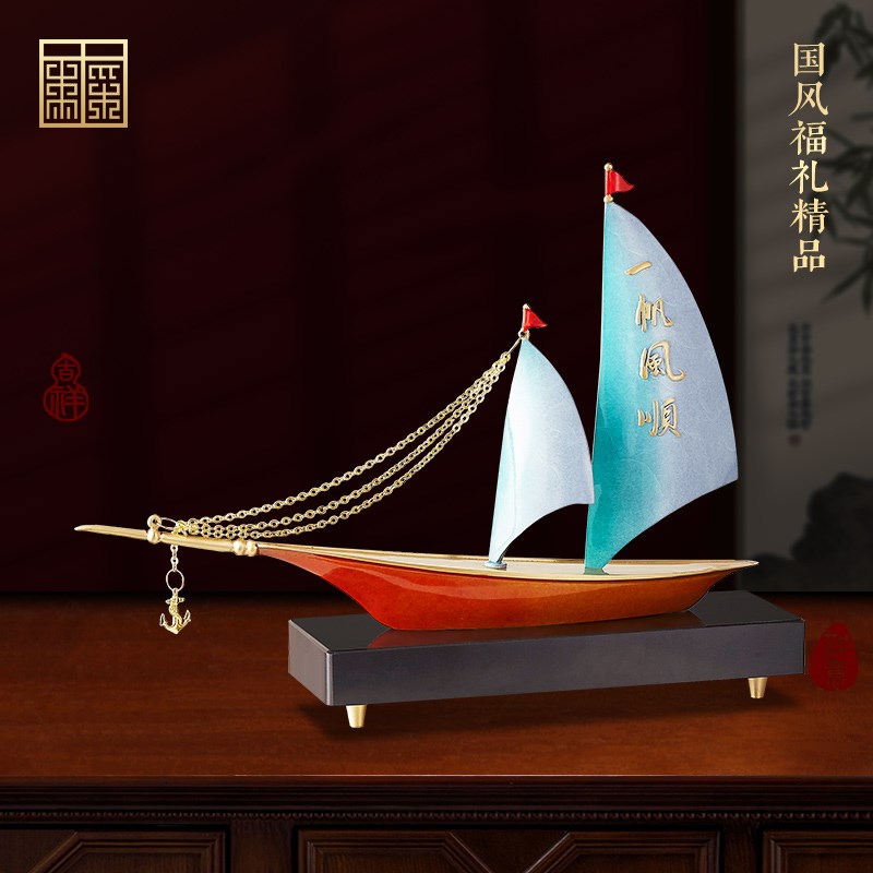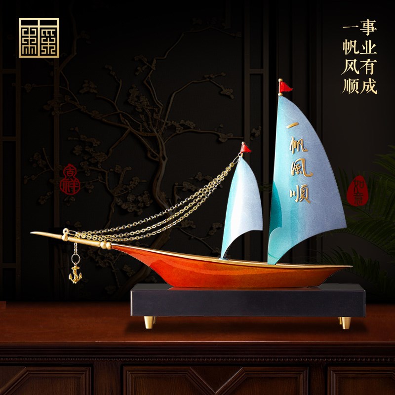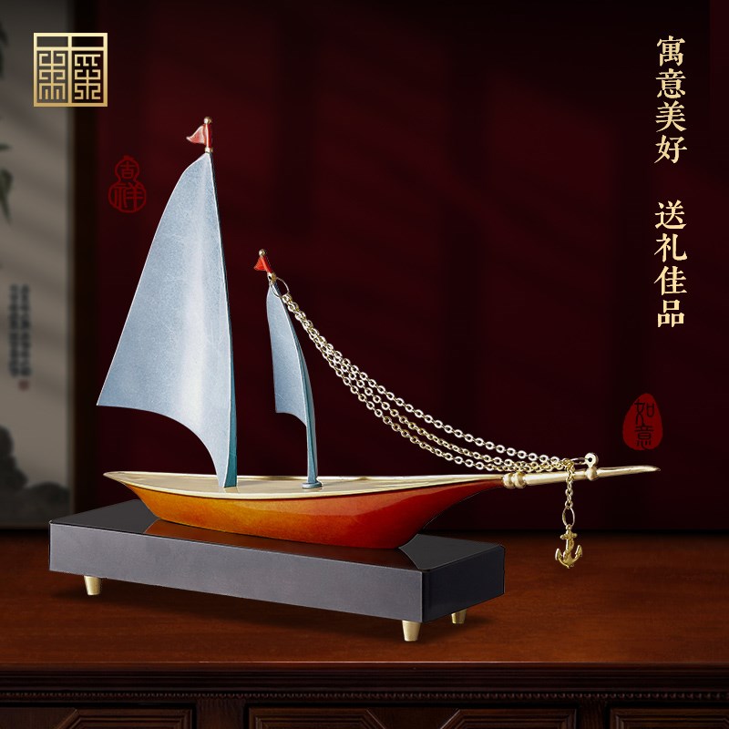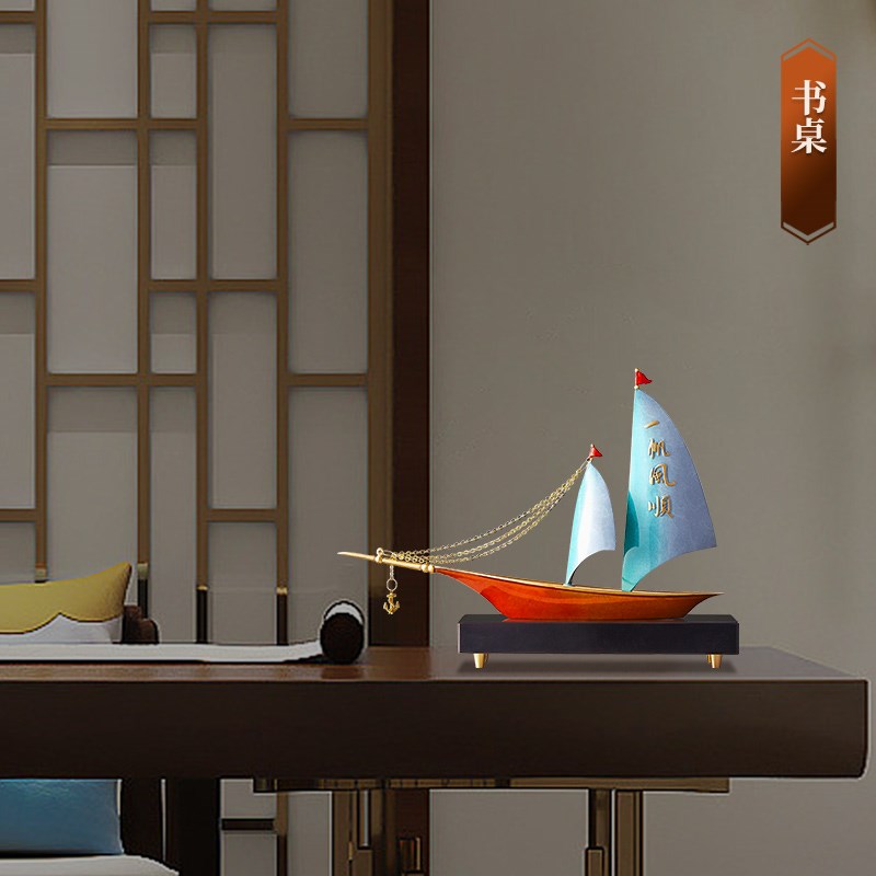 一帆风顺帆船黄铜摆件轻s奢高档办公桌书柜家居客厅玄关酒柜装饰