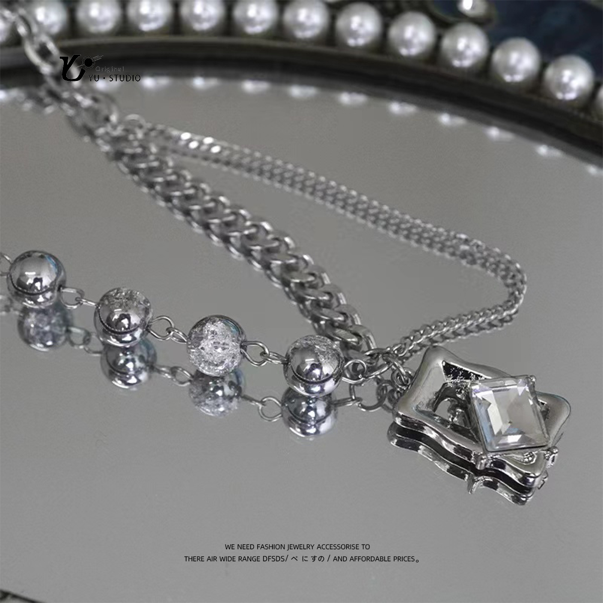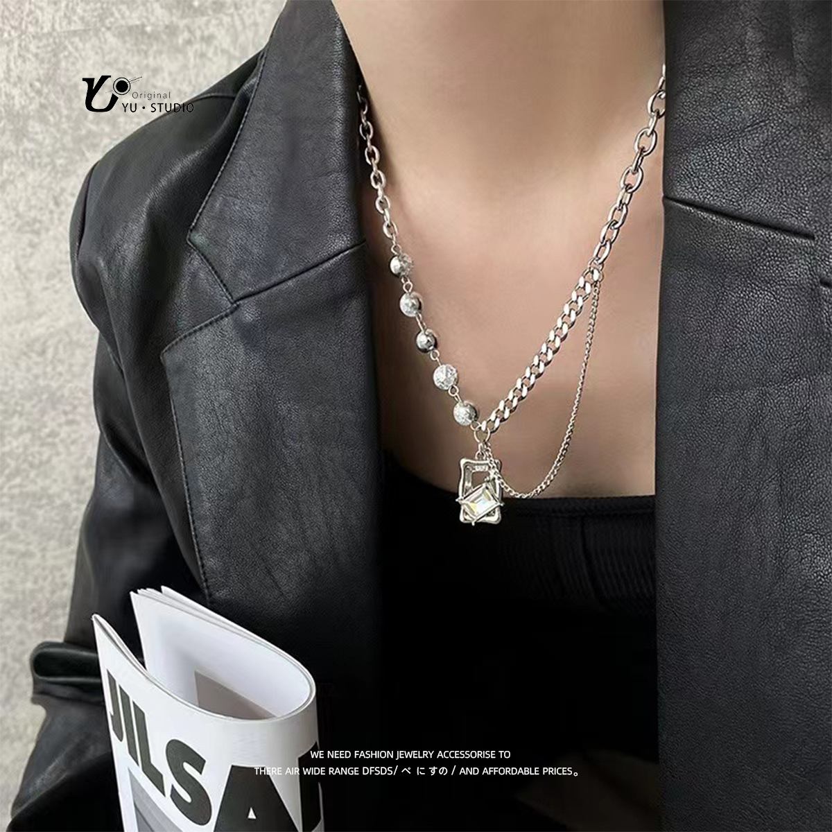 YUSTUDIO小众设计冰裂珠拼接项链中性冷淡风水钻吊坠嘻哈颈链男女