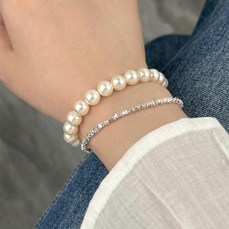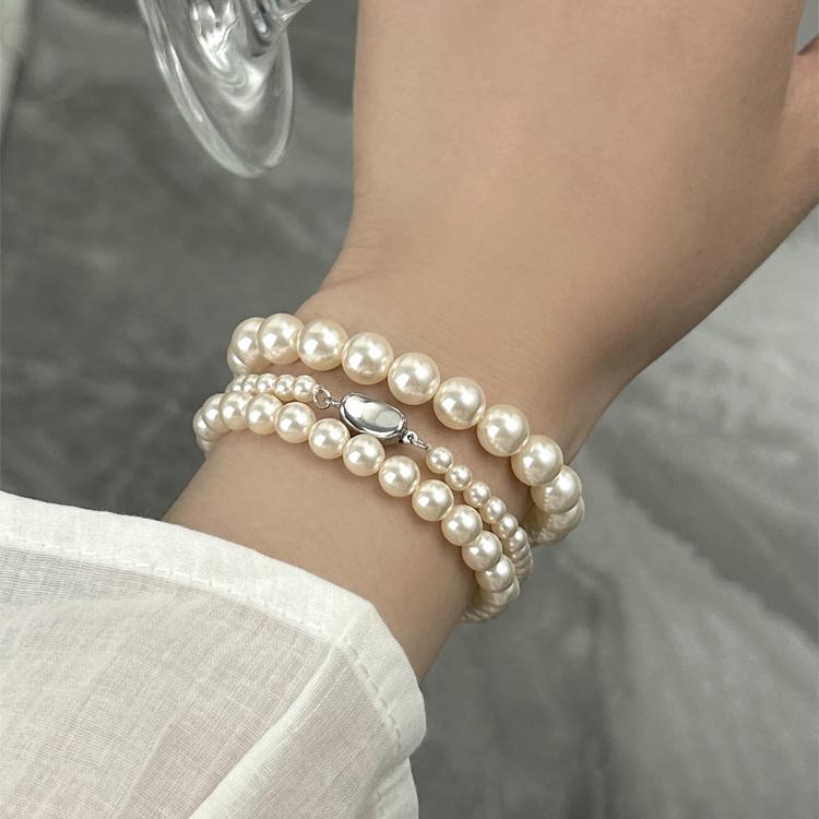 施华家法式元宝扣珍珠手链女高亮奶油白轻奢小众高级精致配饰手饰