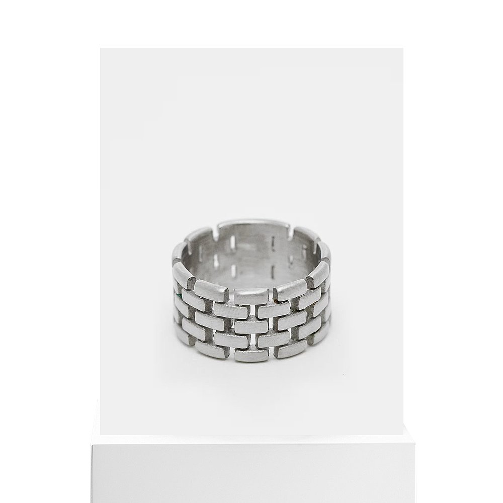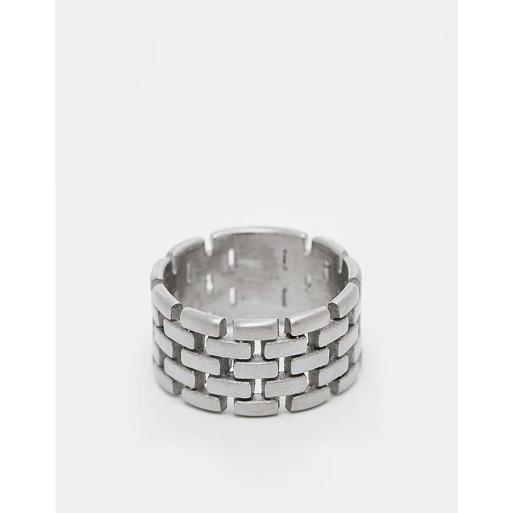 香港直邮ASOS 男士 设计防水不锈钢砖红色链环链条磨毛银色戒指