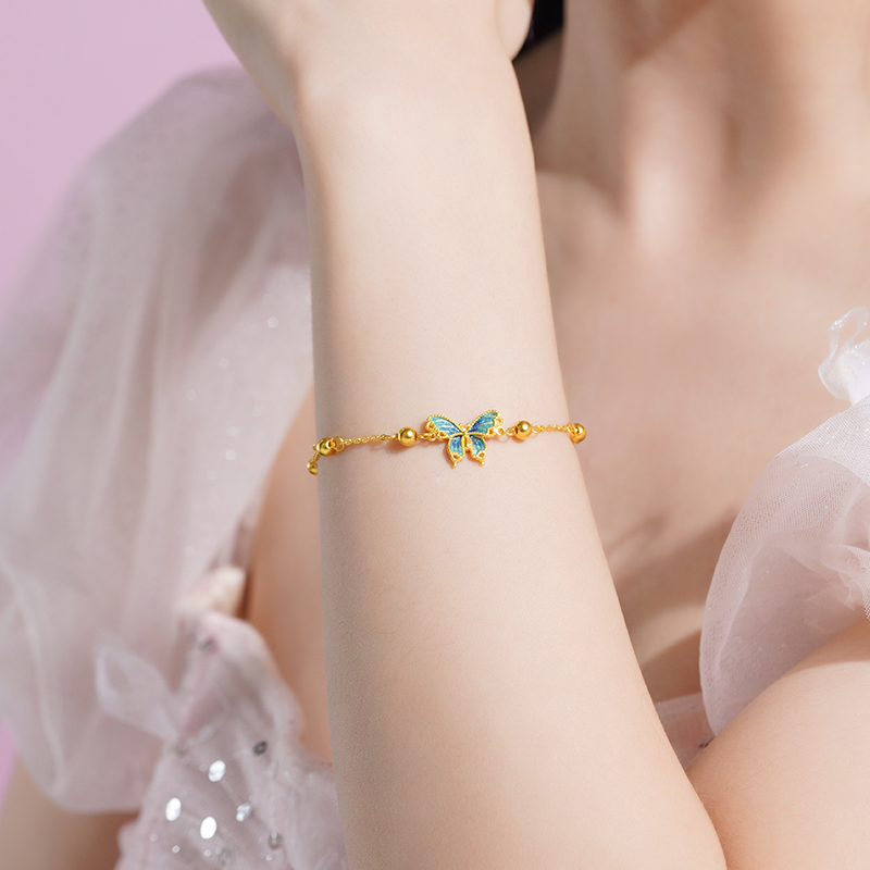 老庙黄金足金蝴蝶手足链古法金蝶恋悦己时尚优雅精致大气佳品