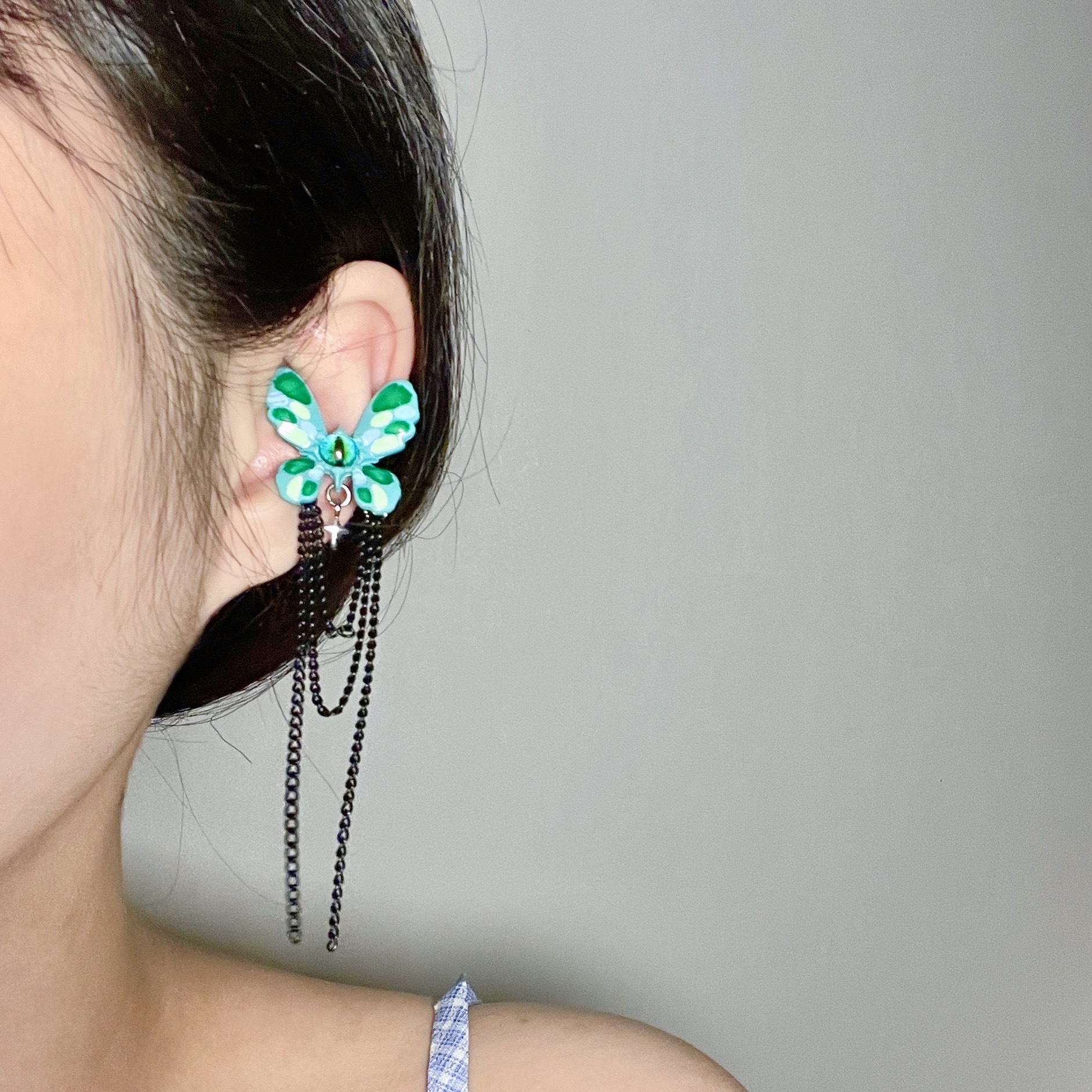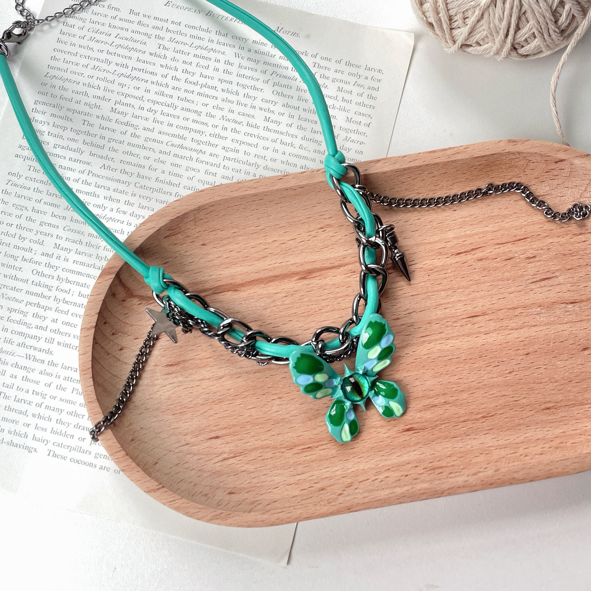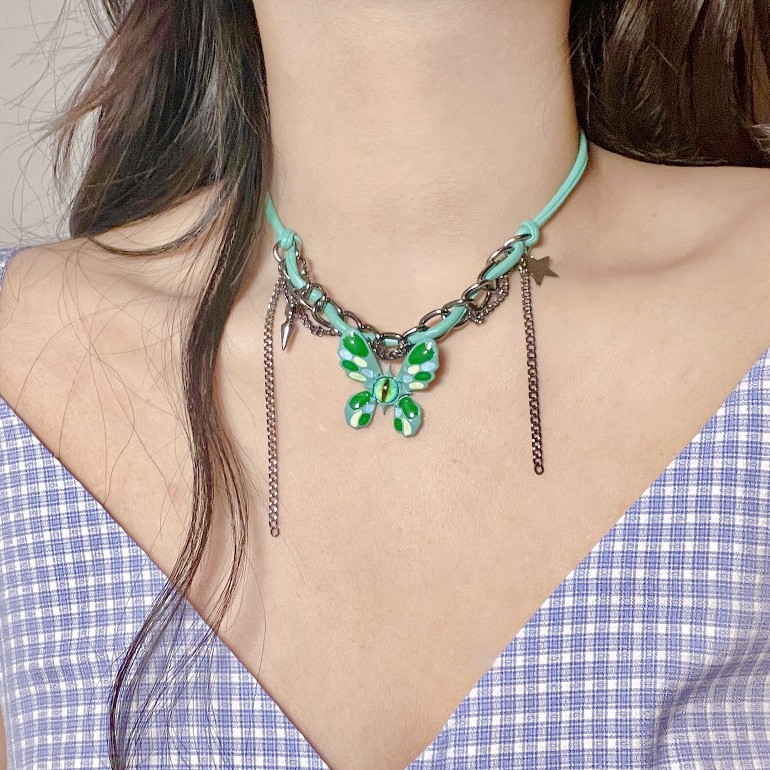 2024新款小众感百搭甜酷ins绿色蝴蝶流苏项链锁骨链女