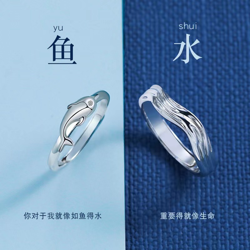 当前位置:首页>商品详情>大海与鲸情侣戒指潮流个性男女开口指环时尚创意如鱼得水纯银对戒