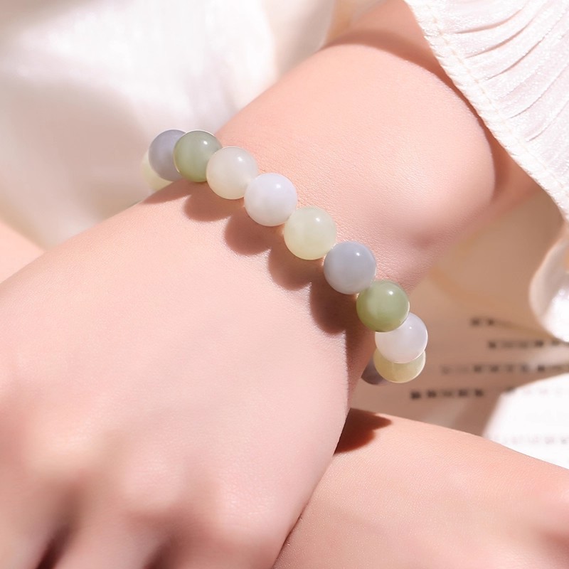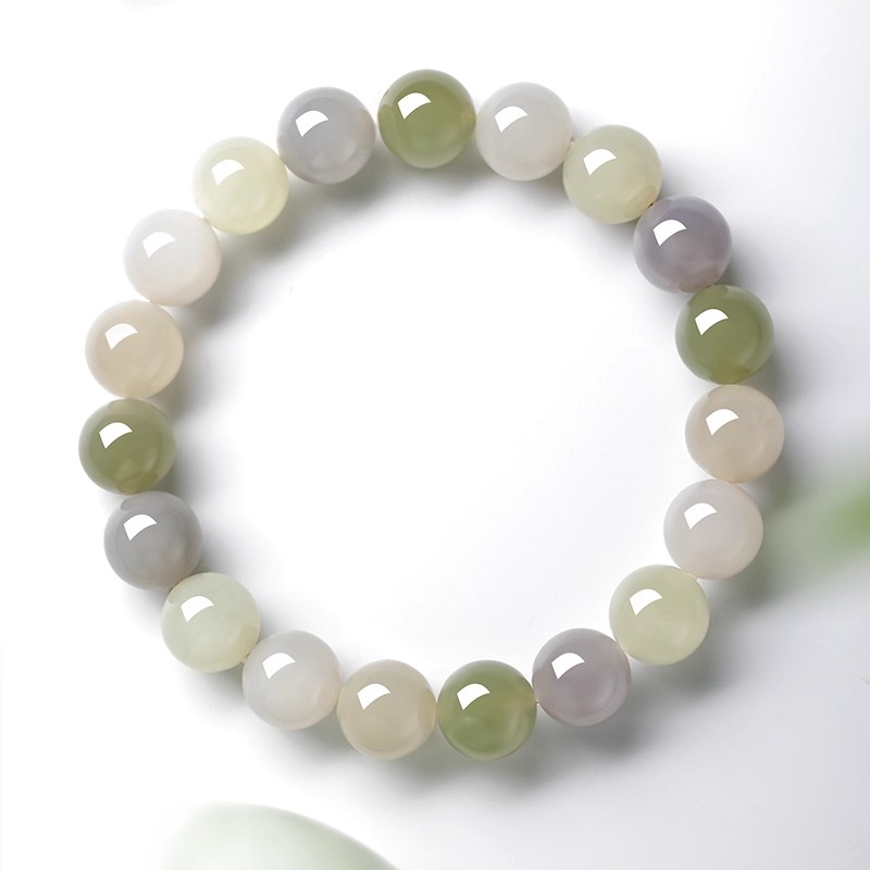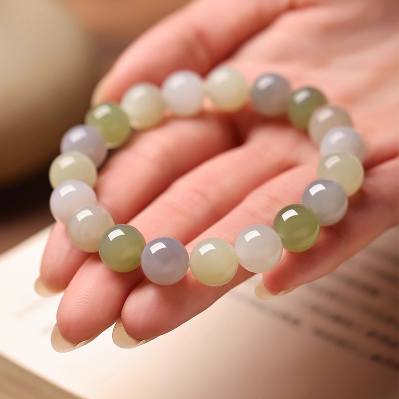 天然和田玉转运珠多宝手串素圈渐变手链女夏玉石糖玉烟紫白玉串珠