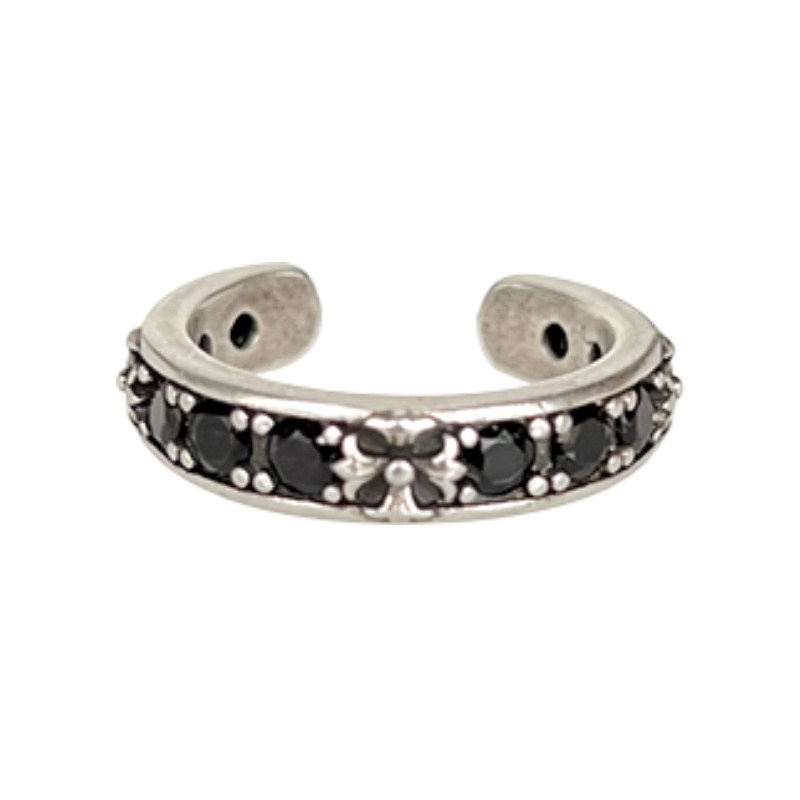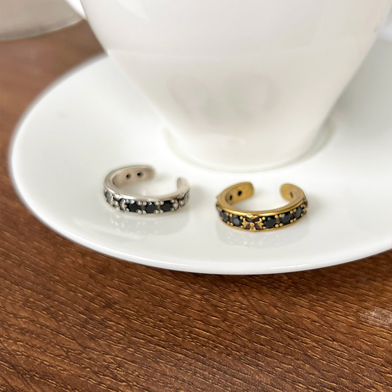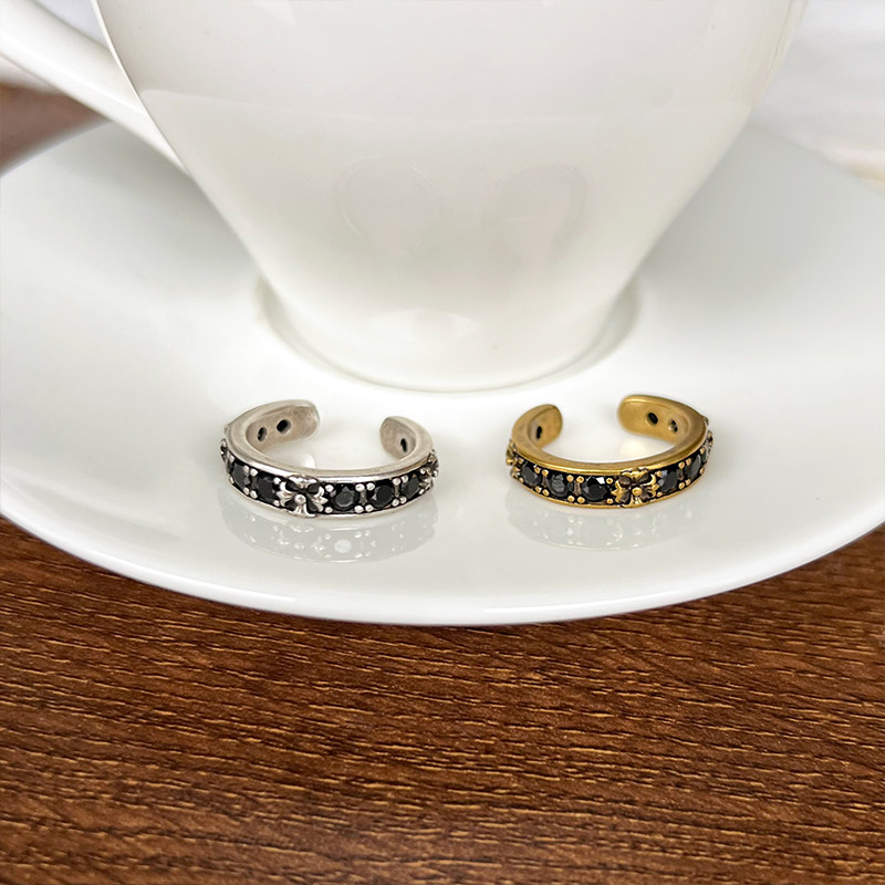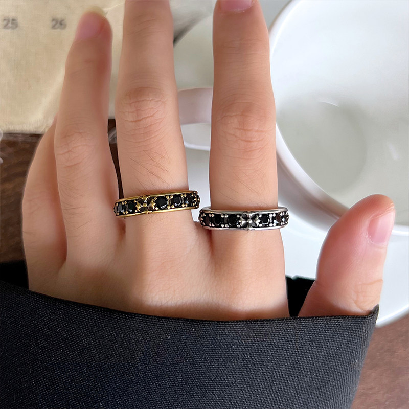 925银戒指女黑色锆石十字架指环小众设计个性复古法金尾戒男