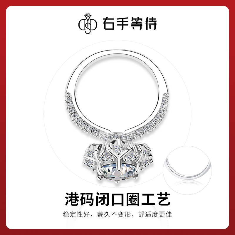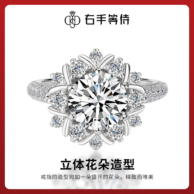 右手等待心花怒放S925纯银正品莫桑石欧美高奢满钻2克拉钻戒指女