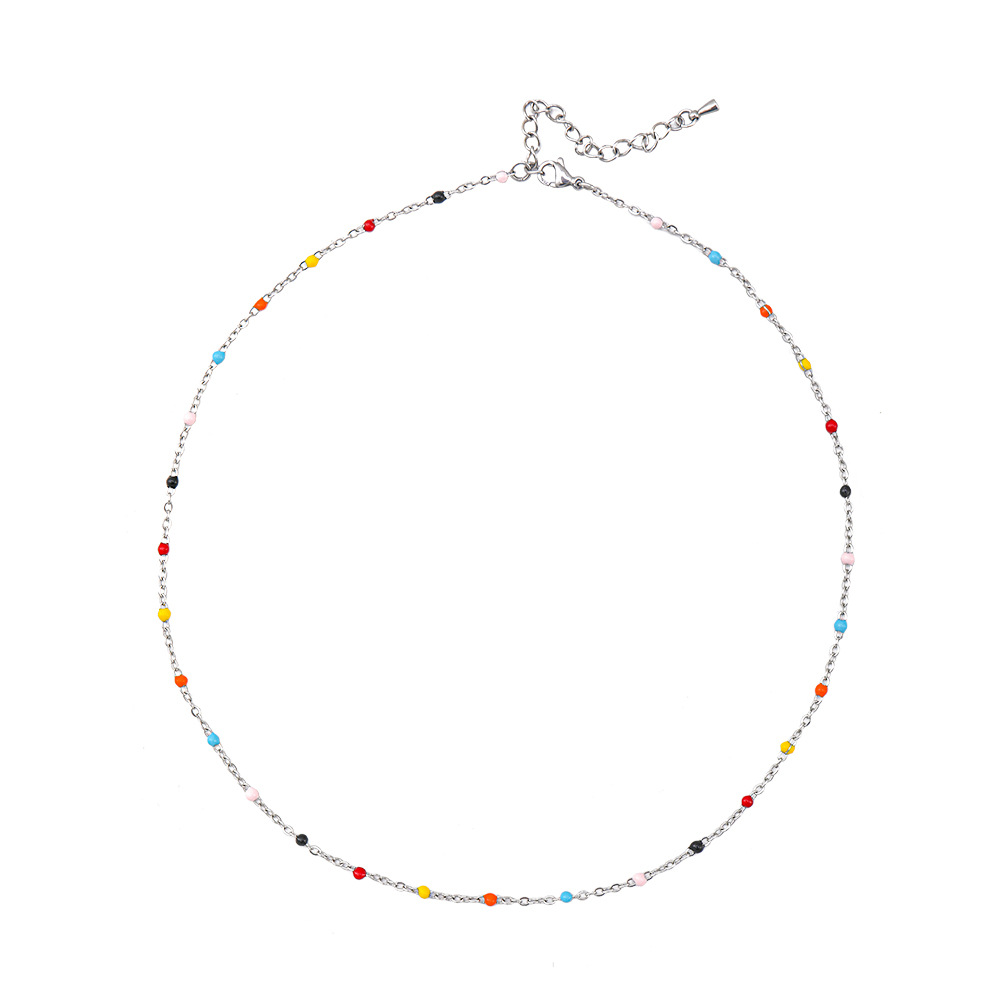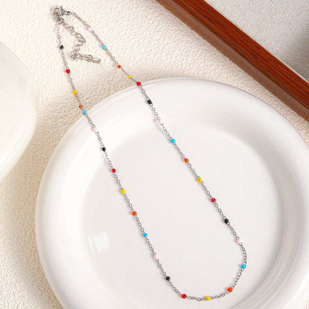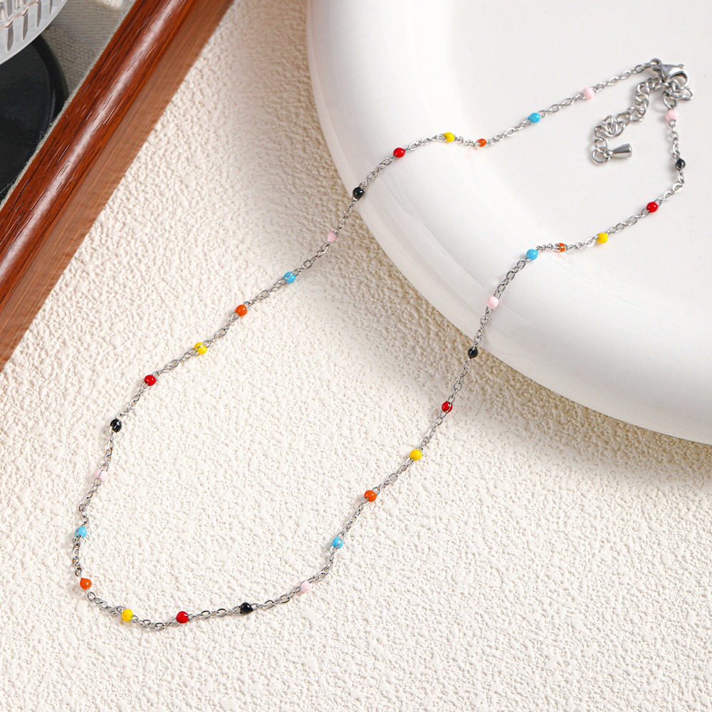 小红书爆款不锈钢滴油彩色豆豆链条项链ins简约时尚百搭锁骨链女