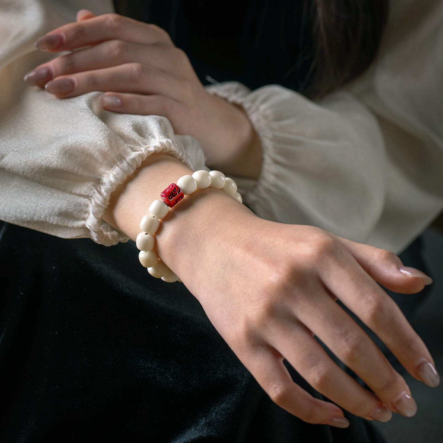 天然菩提手串和田玉纯银本命像手链女款本命年朱砂六字手饰新年礼