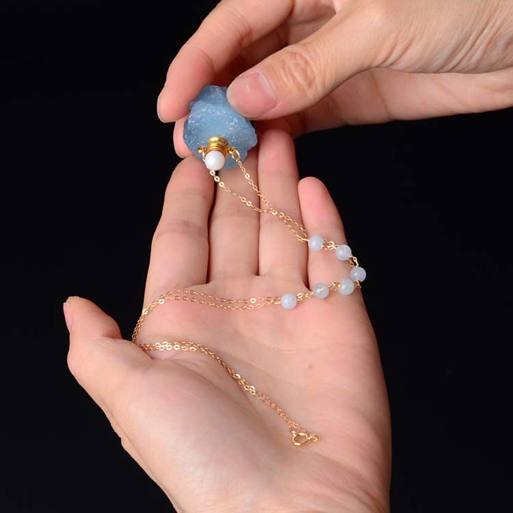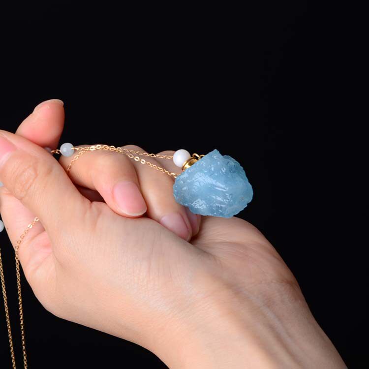 纯天然海蓝宝原石香水瓶精油瓶吊坠女男冰种蓝色水晶项链饰品礼物