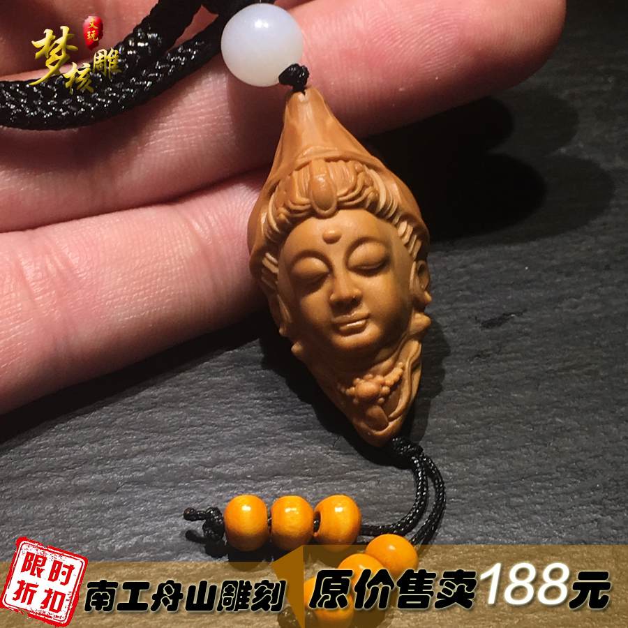 文玩橄榄核雕刻观音单粒橄榄胡菩萨手把件车钥匙吊坠