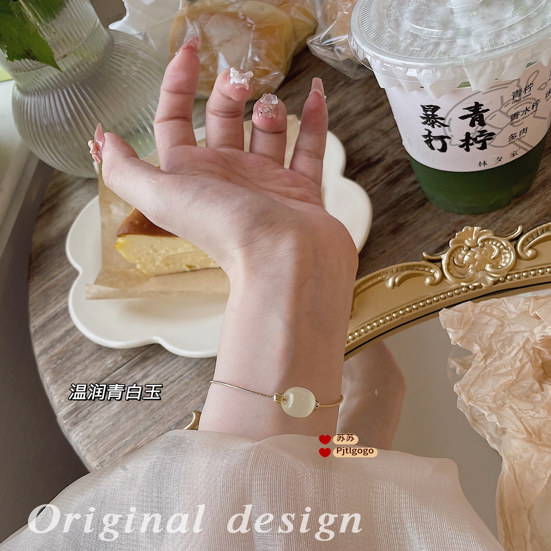 温润青白玉手链女款轻奢小众设计感高级闺蜜礼物送女友