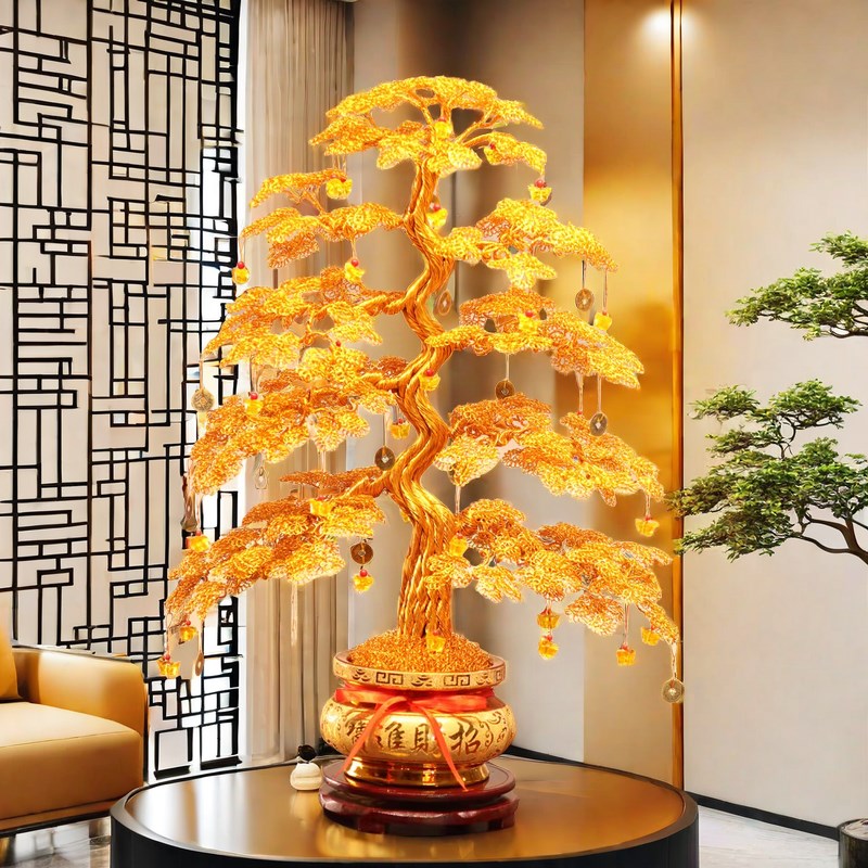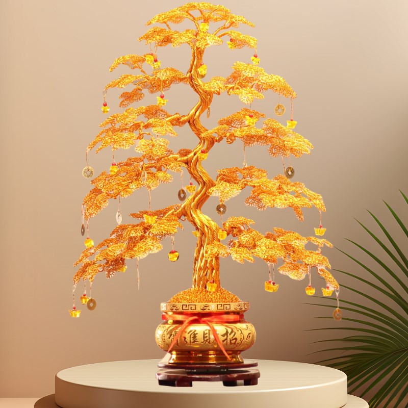 纯手工摇钱树摆件工艺o品招财客厅电视柜装饰品乔迁开业礼物发财