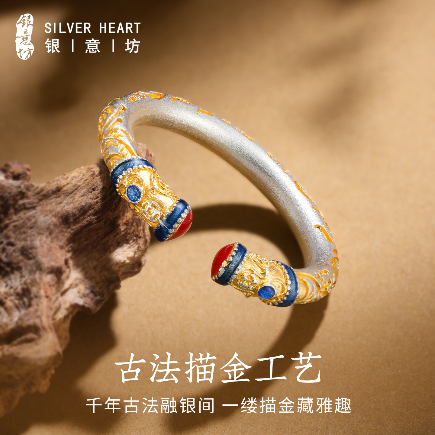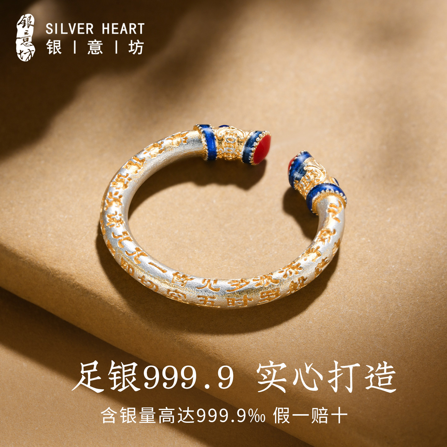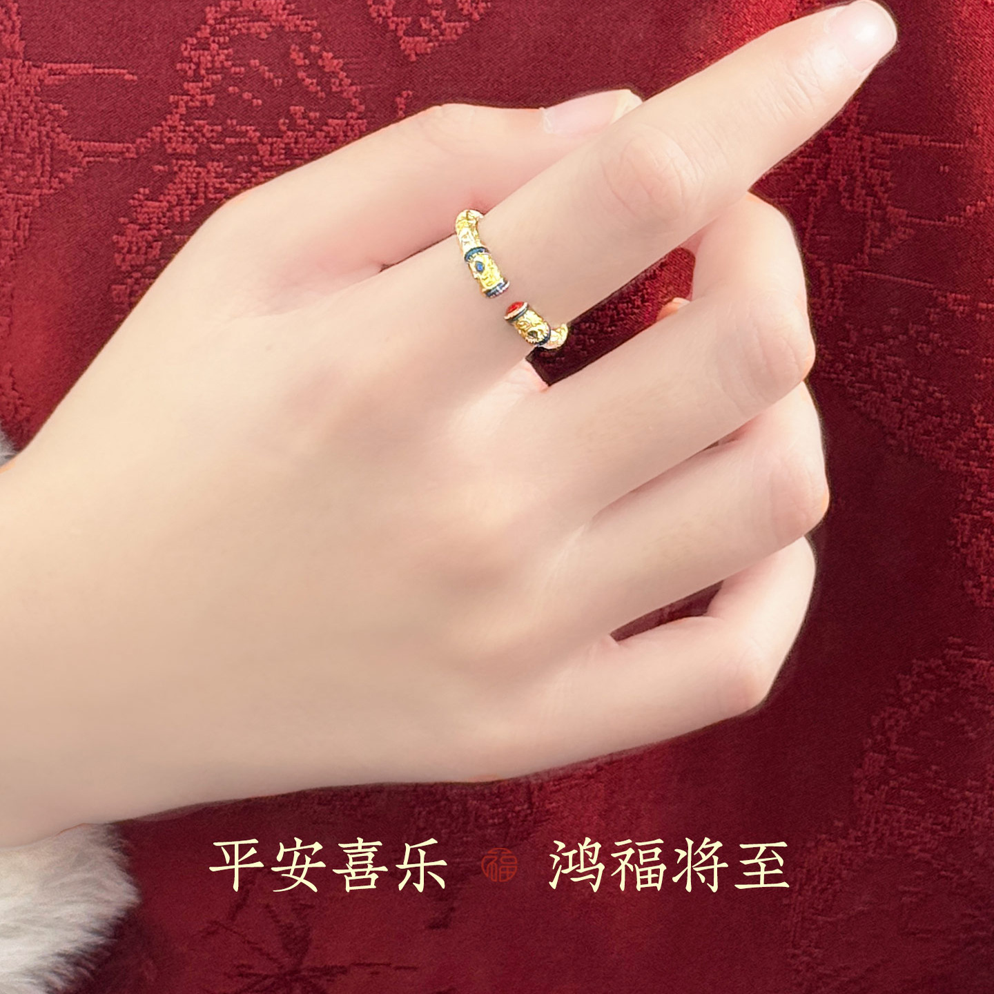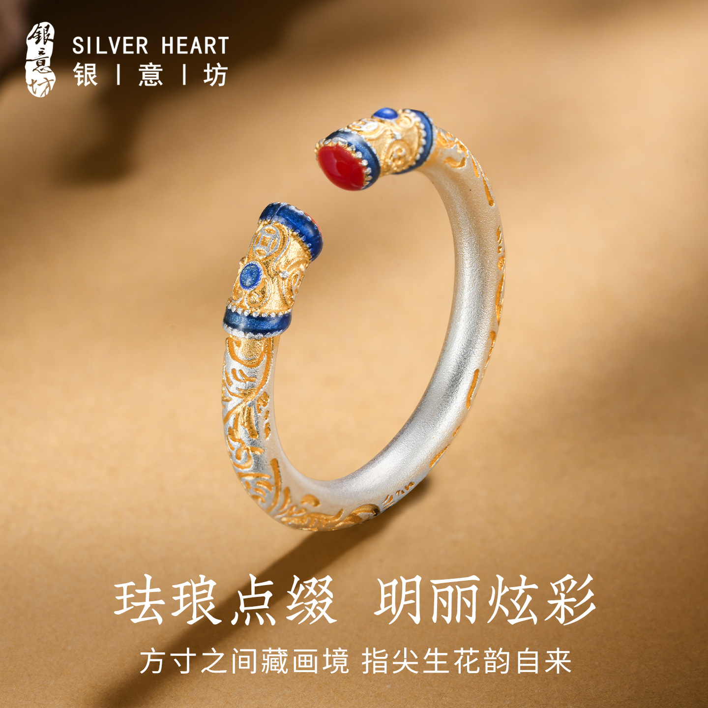 珐琅银戒指单人女9999纯银适合妈妈戴的戒指开口老人实用生日礼物