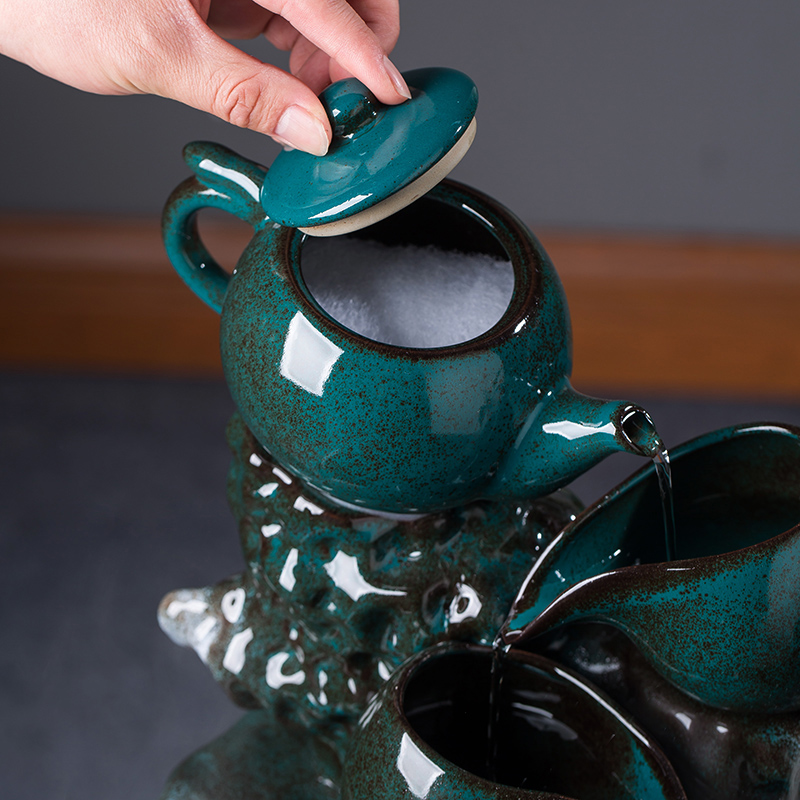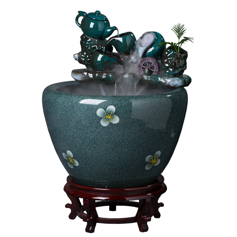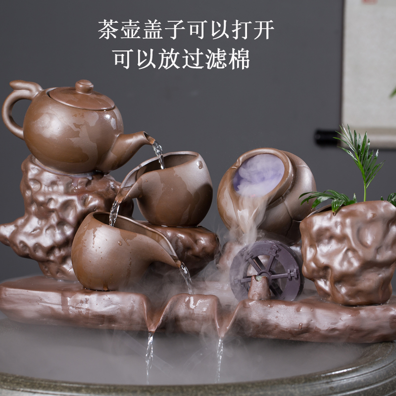 陶瓷鱼缸循环水过滤器流水v摆件石槽水景流水Q器客厅喷泉加湿增氧