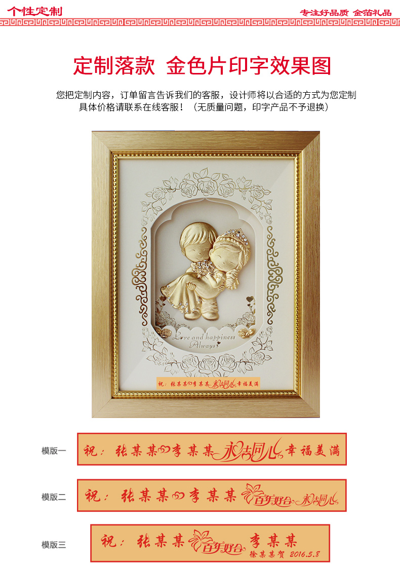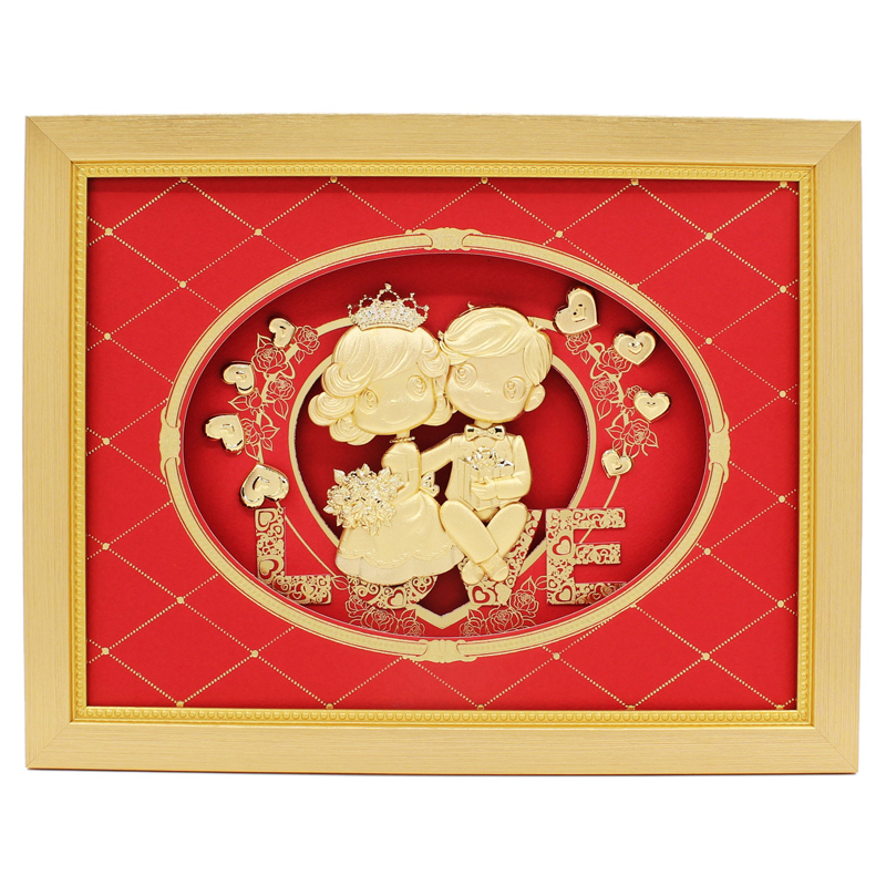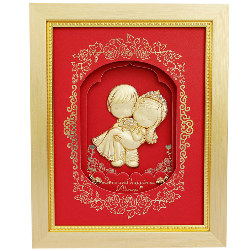 结婚礼物幸福娃娃金箔画送朋友闺蜜创意新婚礼品实用婚房婚庆摆件