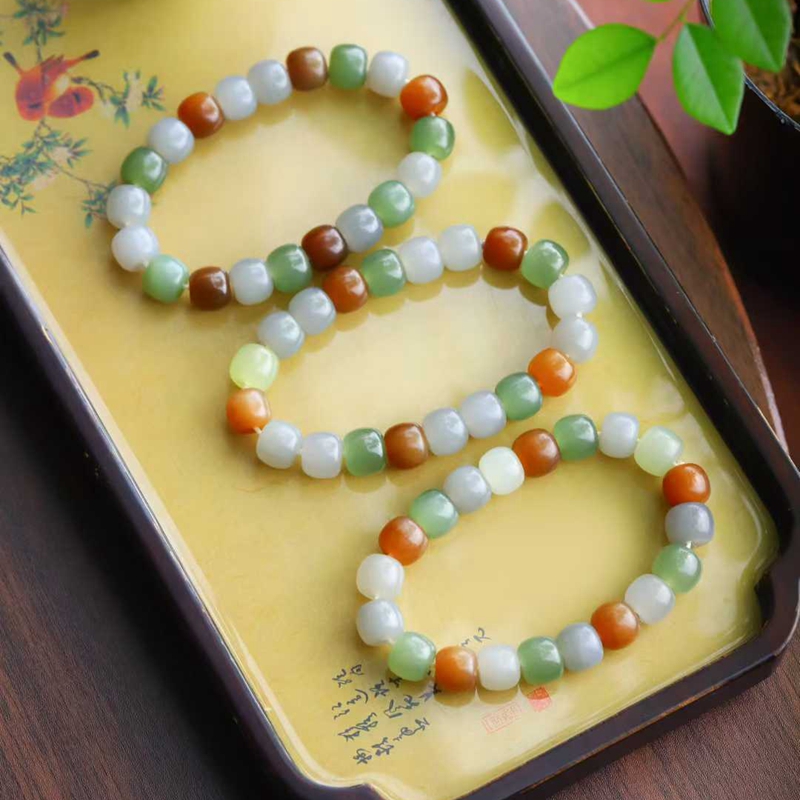 天然和田玉玉器工厂店青海料烟紫色湖水绿糖料老料老型珠多宝手串