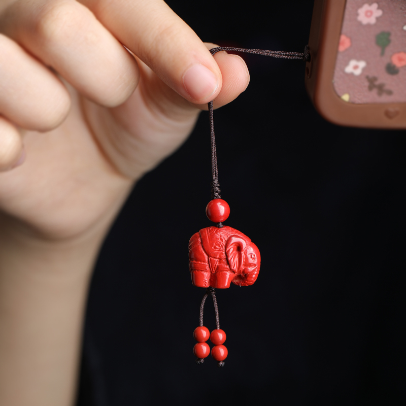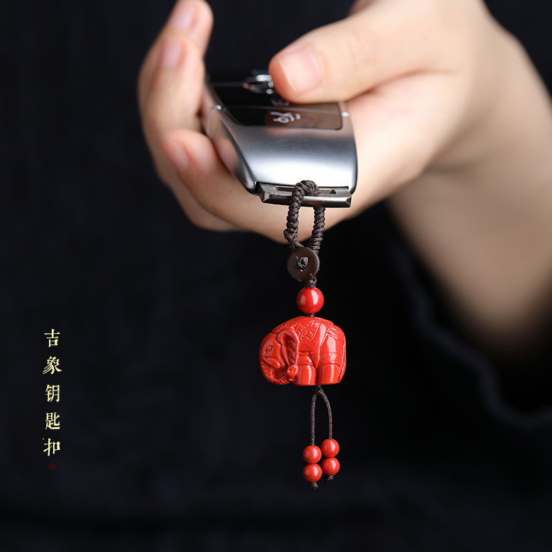 缘之固官方正品朱砂小象吊坠项链吉祥如意本命年钥匙扣挂件手机链