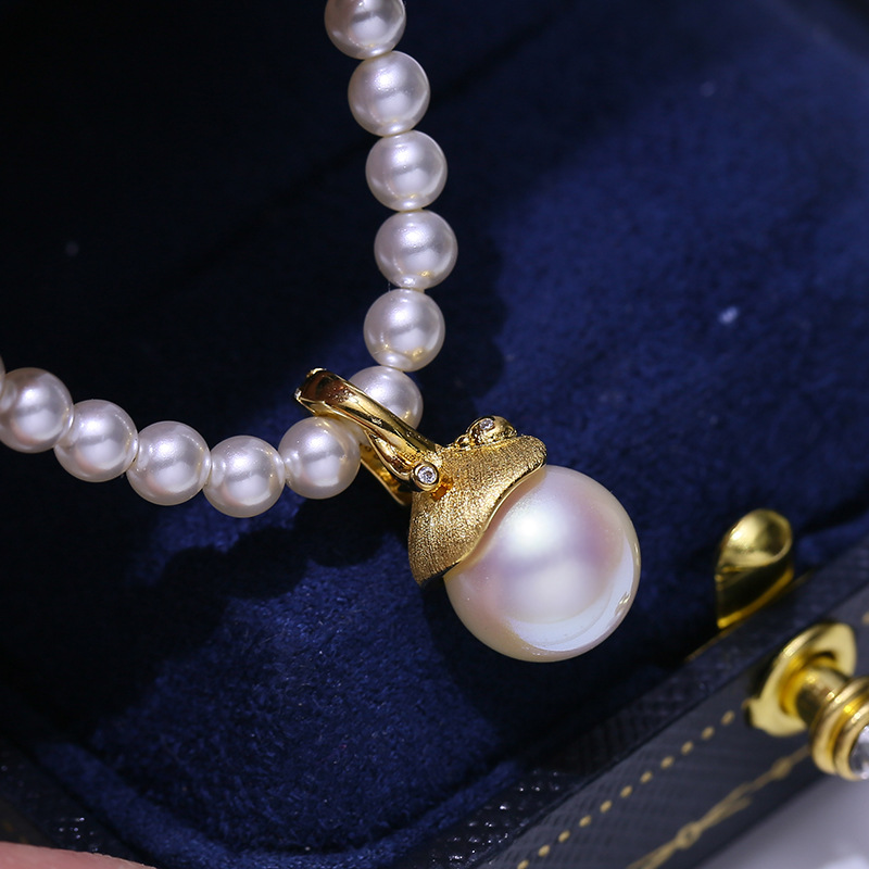 DIY配件 S925纯银珍珠吊坠空托遮瑕款磨砂松果项坠银托可打开拆卸