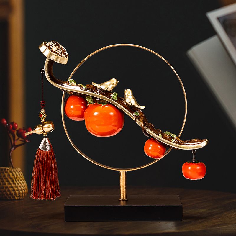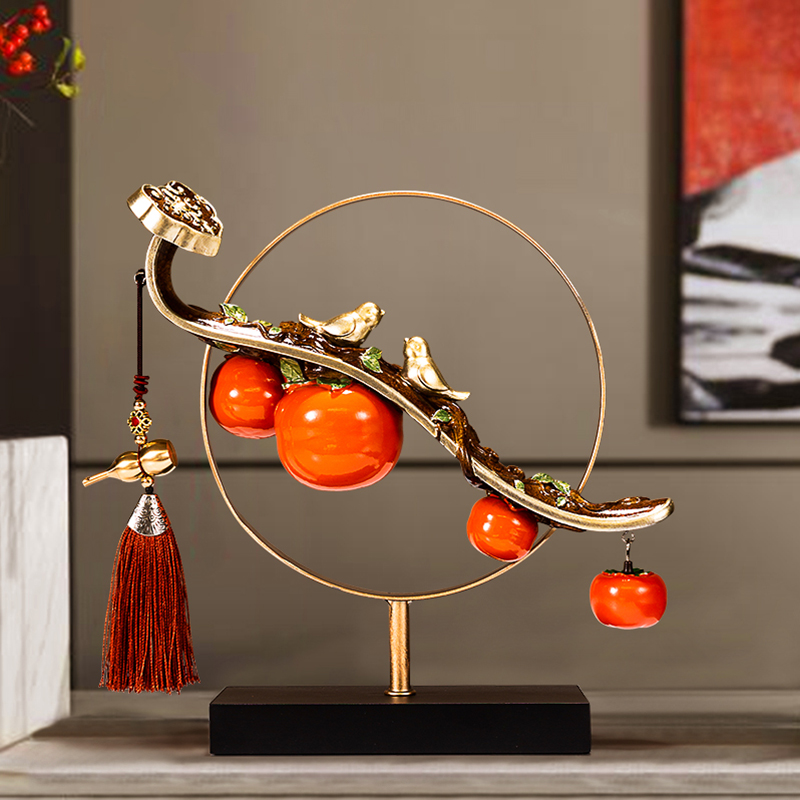 新中式柿柿事事如意柿子摆件客厅玄关电视柜搬家礼物乔迁新居礼品