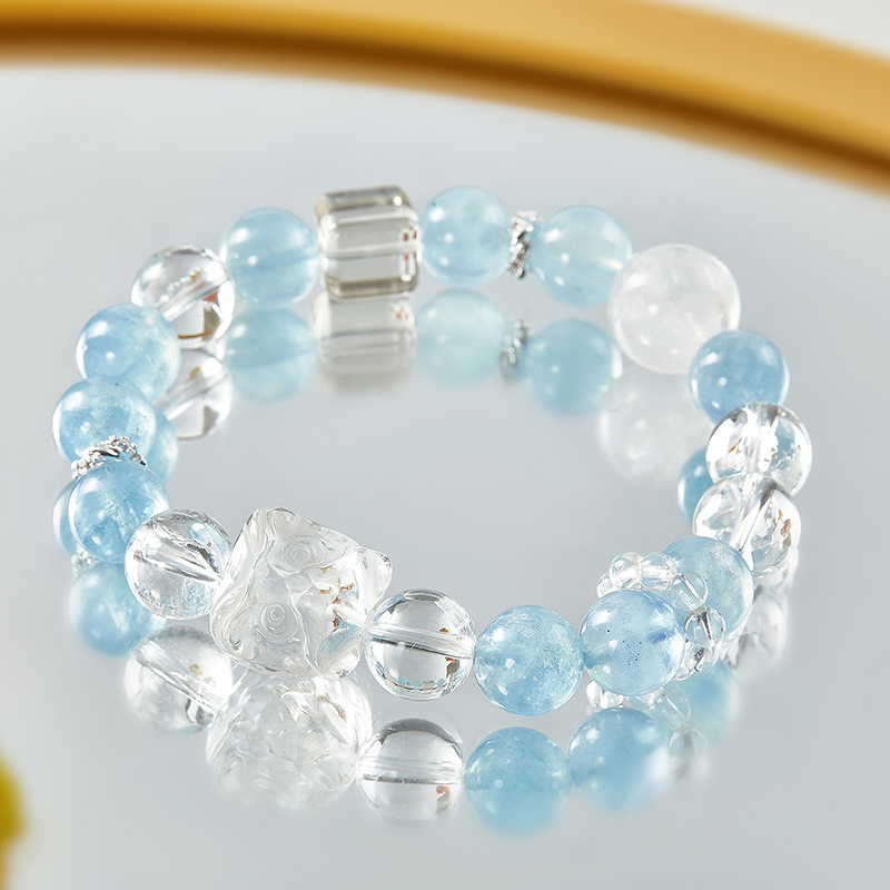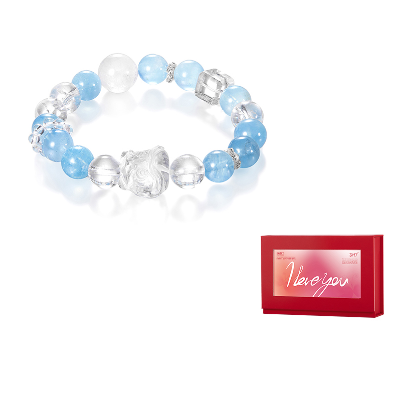 DH7醒狮海蓝宝水晶手链女款轻奢小众原创精致白水晶手串生日礼物