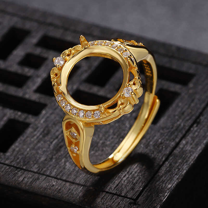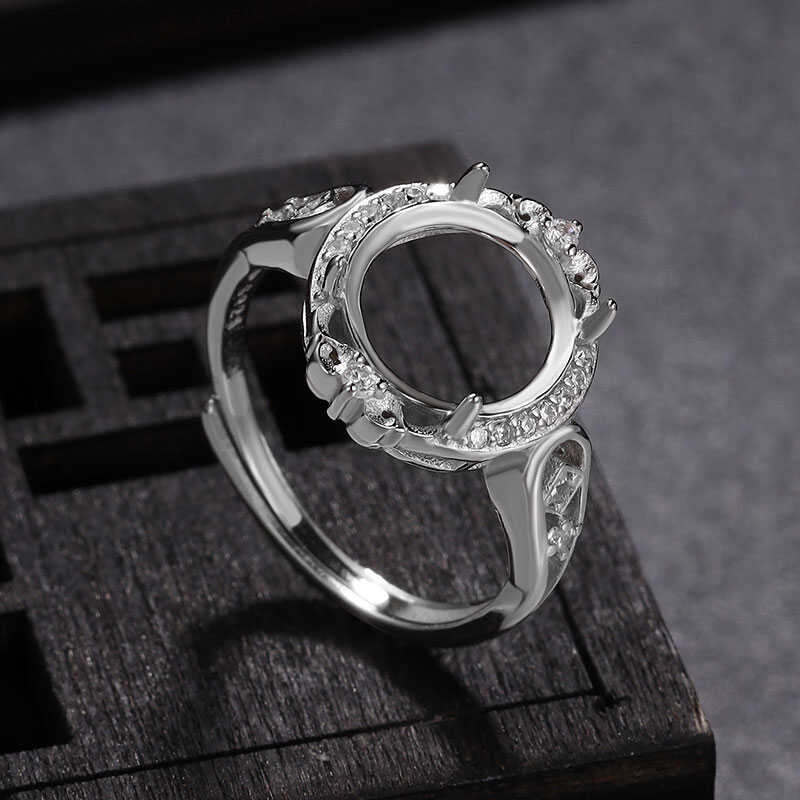 平安扣戒托女S925纯银小平安扣戒托算盘珠扁珠翡翠diy戒指空托