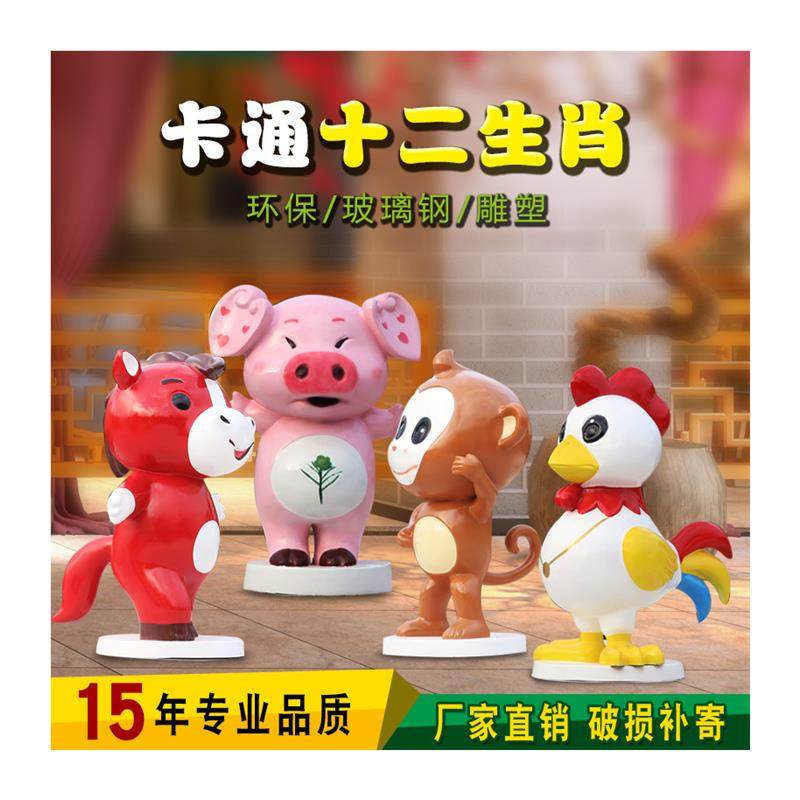 玻璃钢卡通十二生肖雕塑摆件大型吉祥物公仔商场美陈户外小品装饰