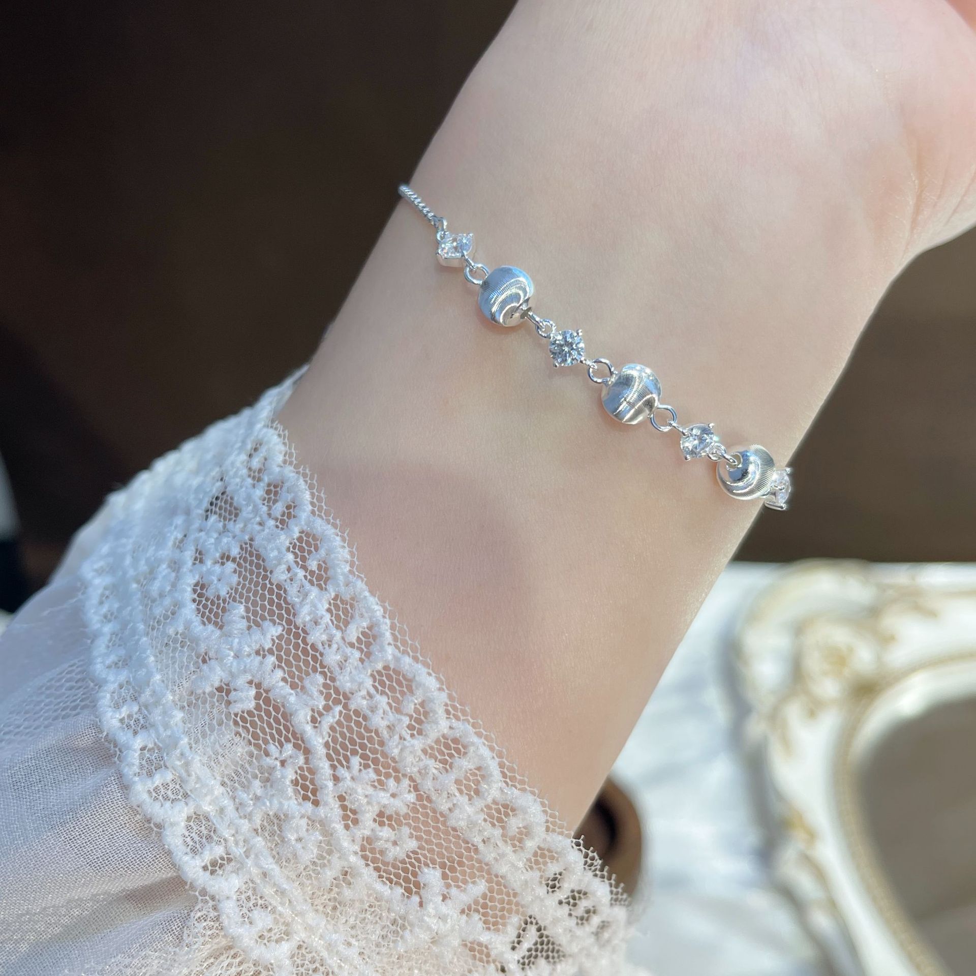 s925银水钻锆石闪闪猫眼珠手链女爆闪时髦轻奢风伸缩可调节手链