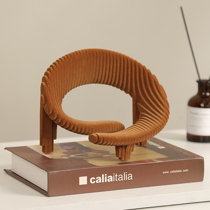 现代简约树脂g植绒抽象躺椅书房样板间售楼部书架桌面装饰摆件送