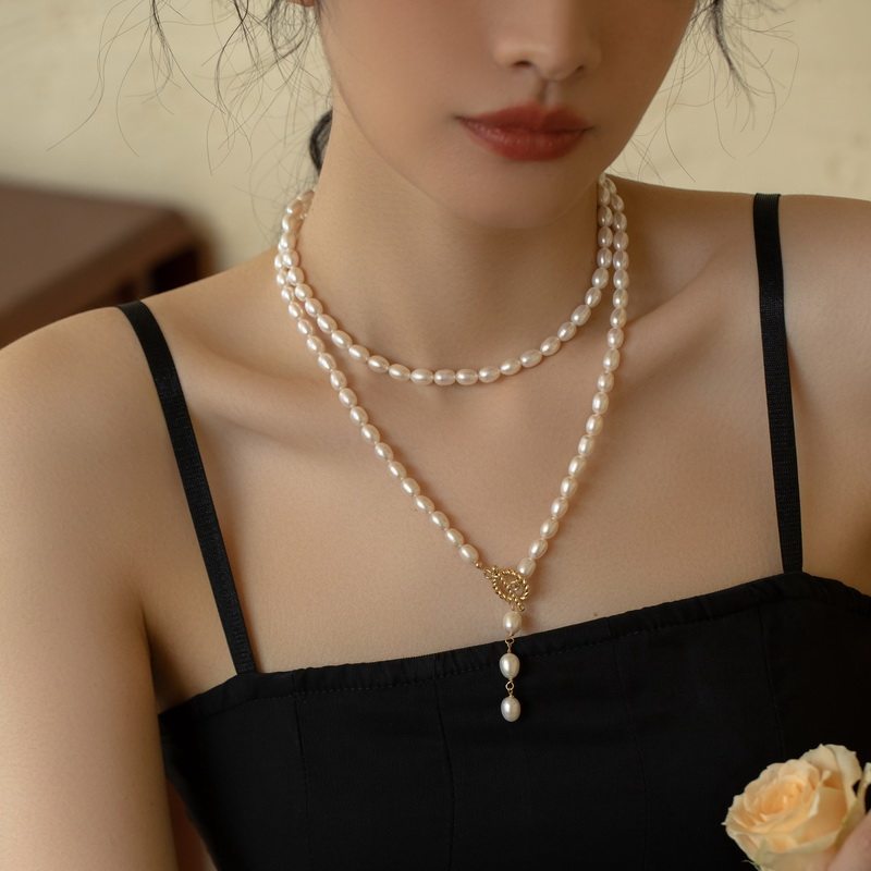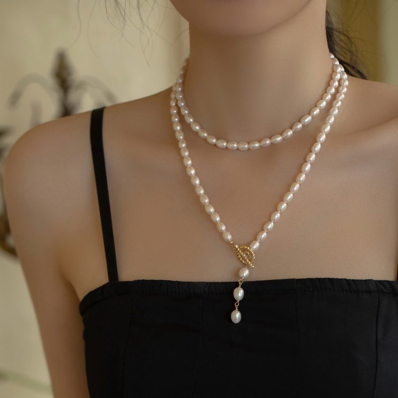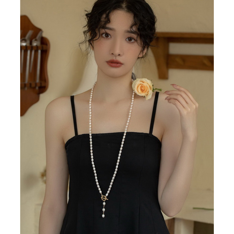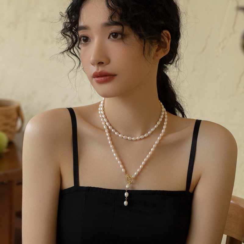 饰品长款项链淡水珍珠项链双层锁骨链毛衣链旗袍链女