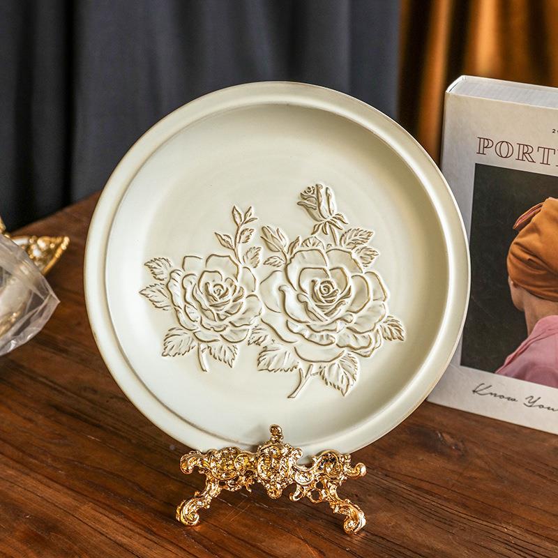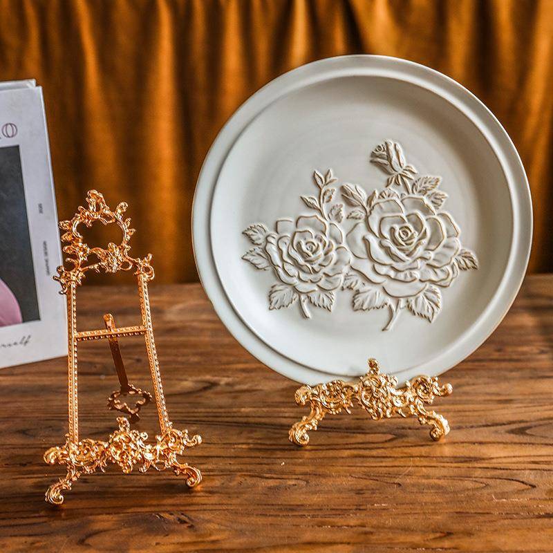 古典做旧盘盘子支示架展架复古浮雕架装轻奢摆a-455件相框支架画