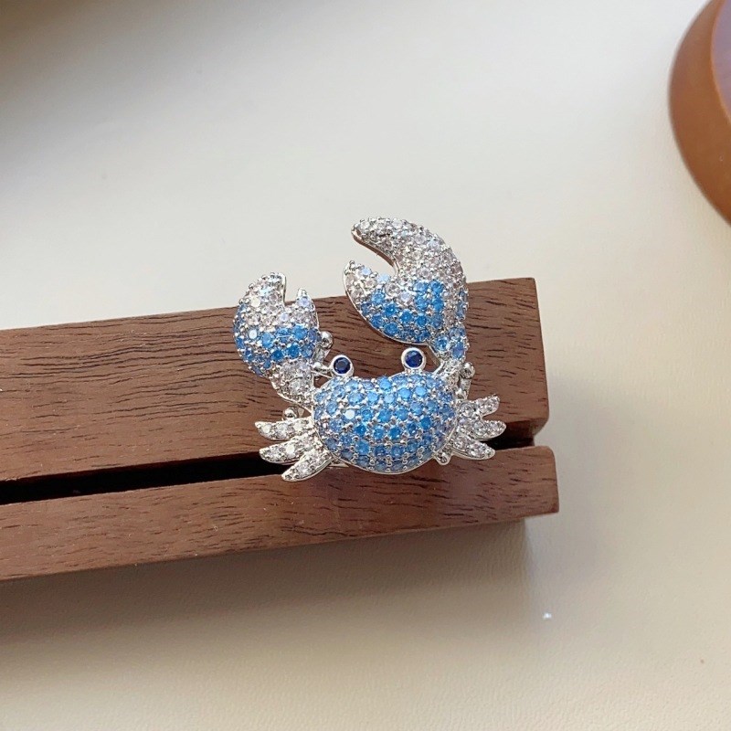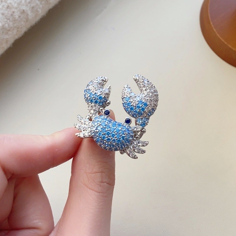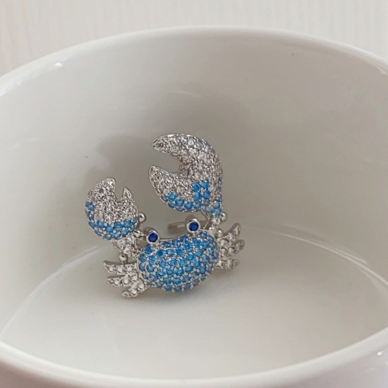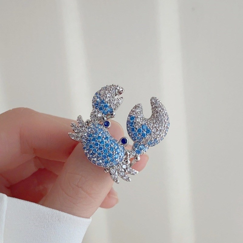 轻奢高级感满钻锆石螃蟹戒指x超闪水蓝渐变精致时尚开口戒食指戒