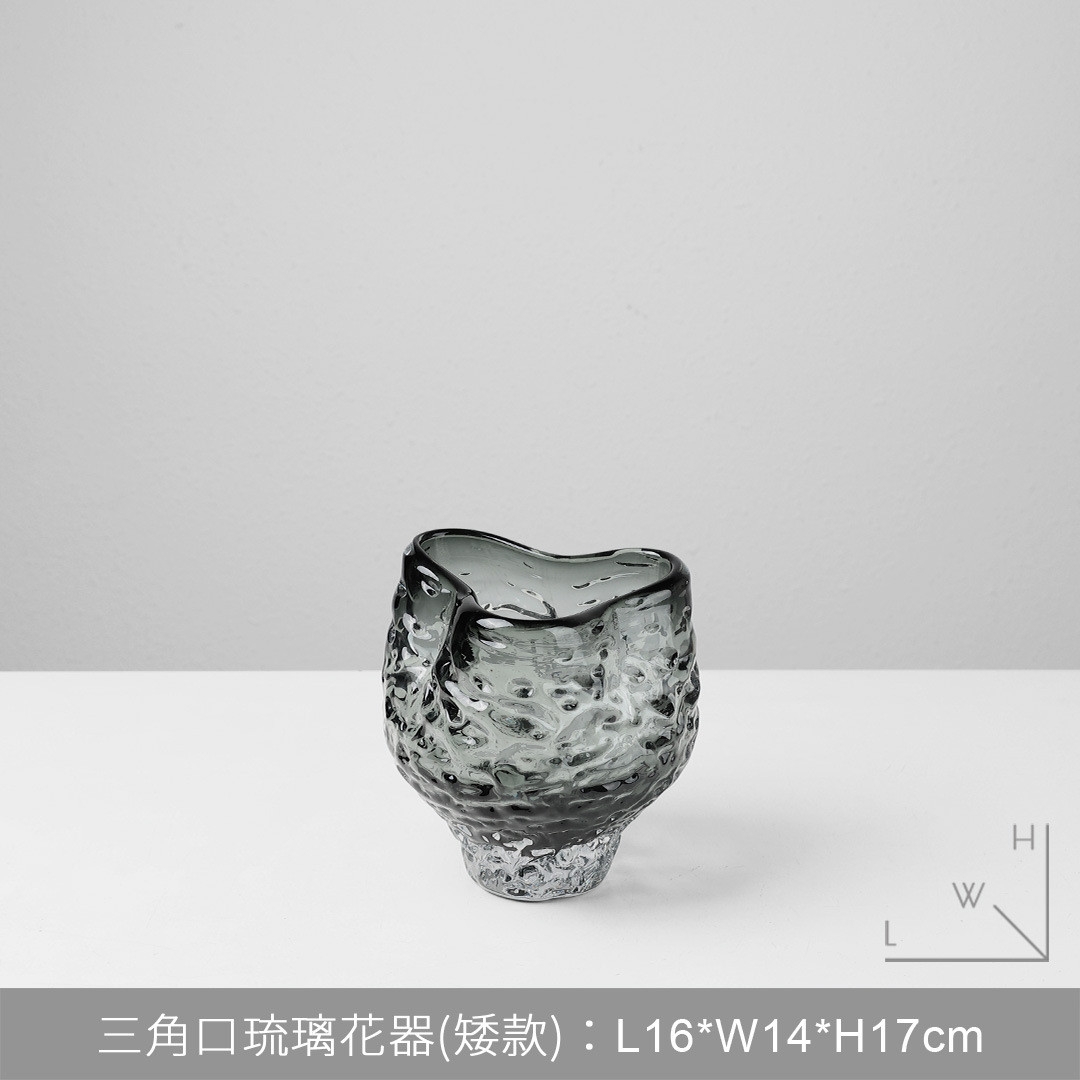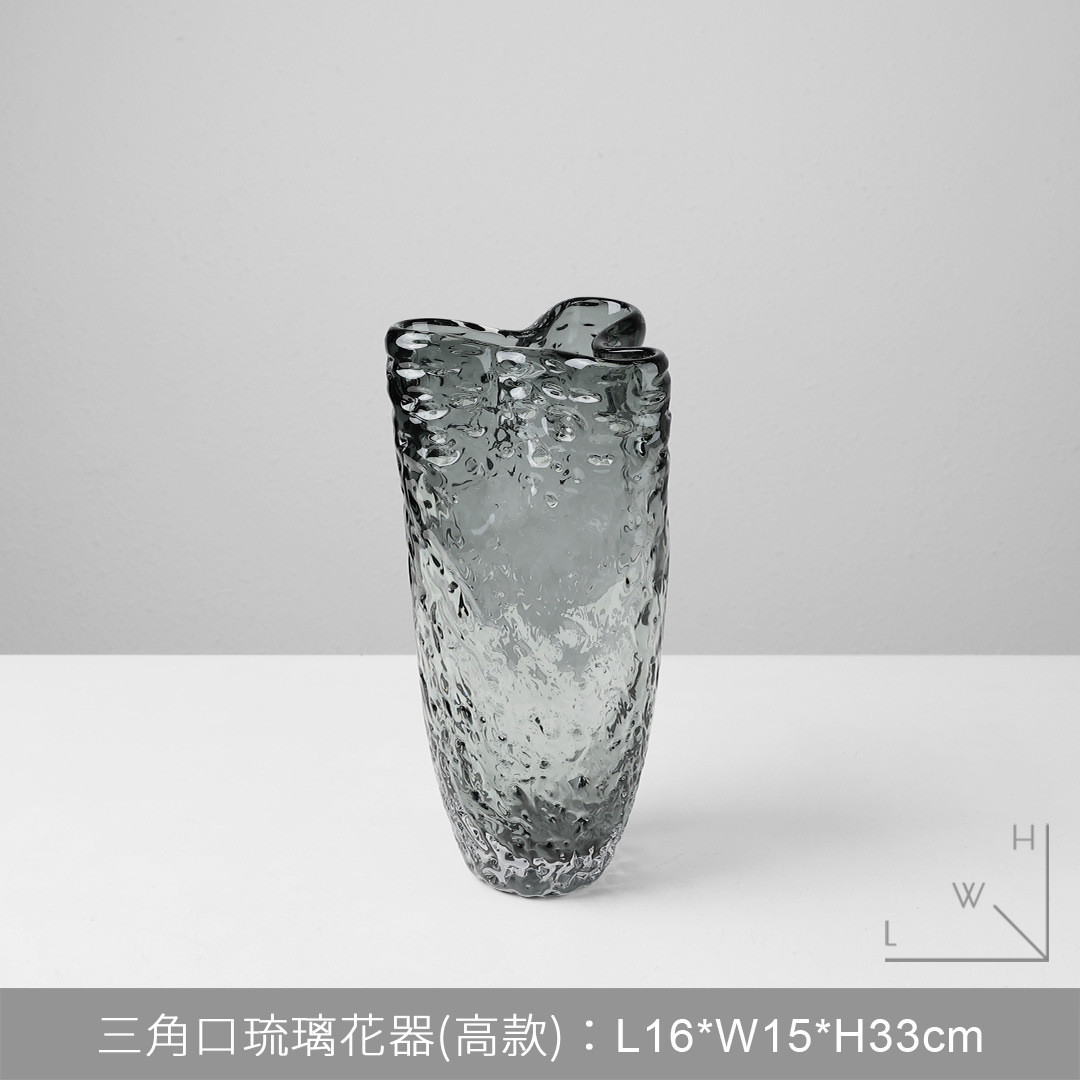 客厅轻奢高端花瓶透明琉璃花器样板间卧室床头现代插花高级感摆件