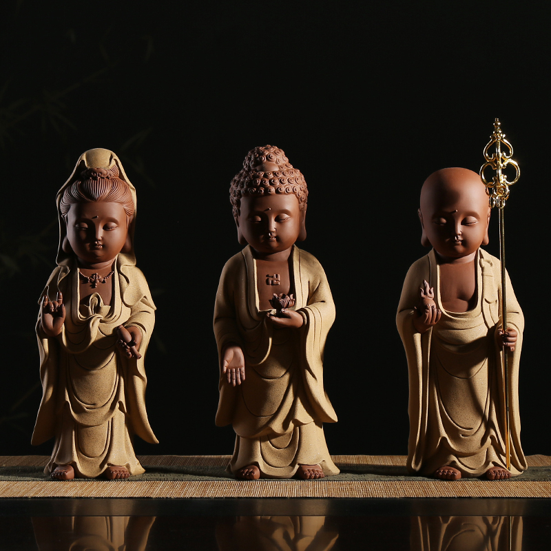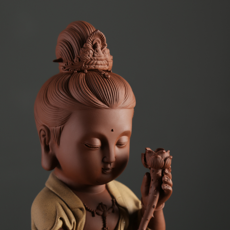 炼器中式文殊普贤佛像摆件客厅玄关博古架居家供奉陶瓷禅意装饰品