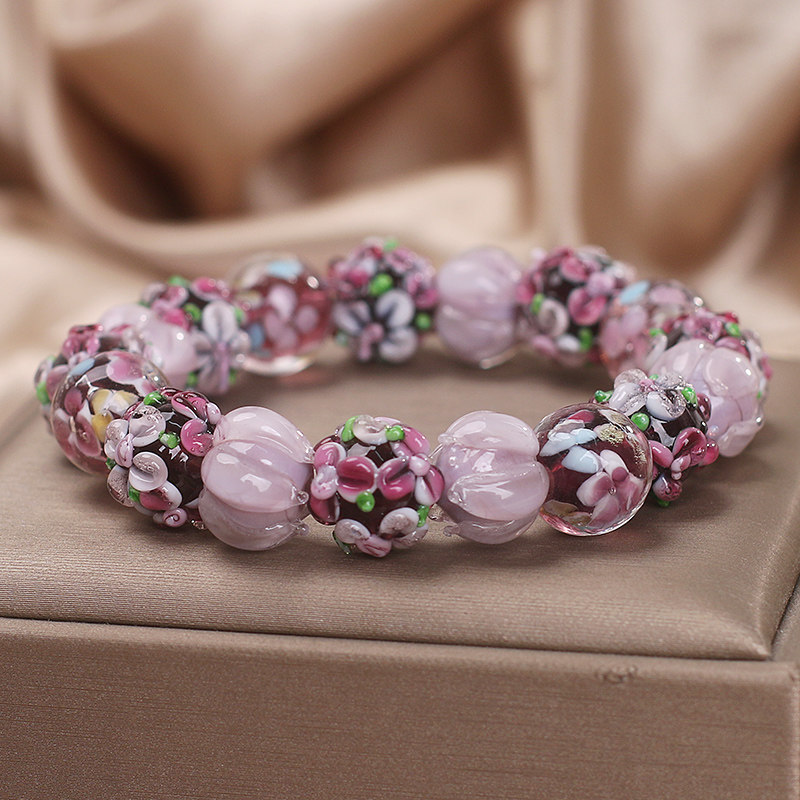 新中式紫色繁花琉璃珠手链女轻奢小众高级感铃兰花中珠手串送闺蜜