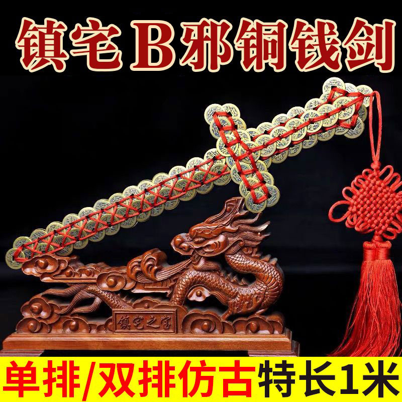 速发林正英铜钱剑法器道家挂件镇宅宝剑招财运物件古钱剑五钱金钱