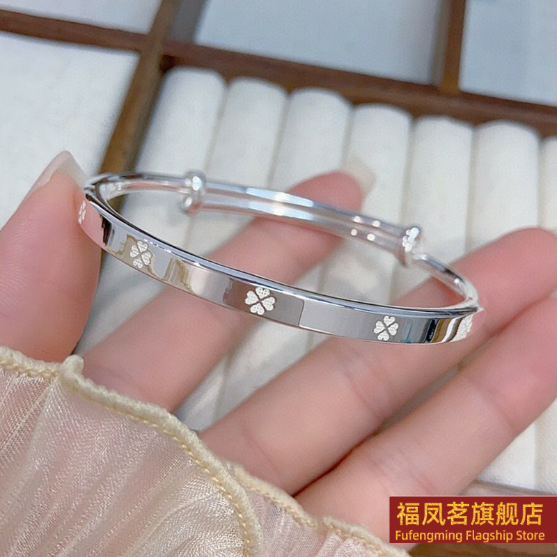 正生四叶草纯银手镯足银9999女实心新款刻字高级感送女友生日礼物