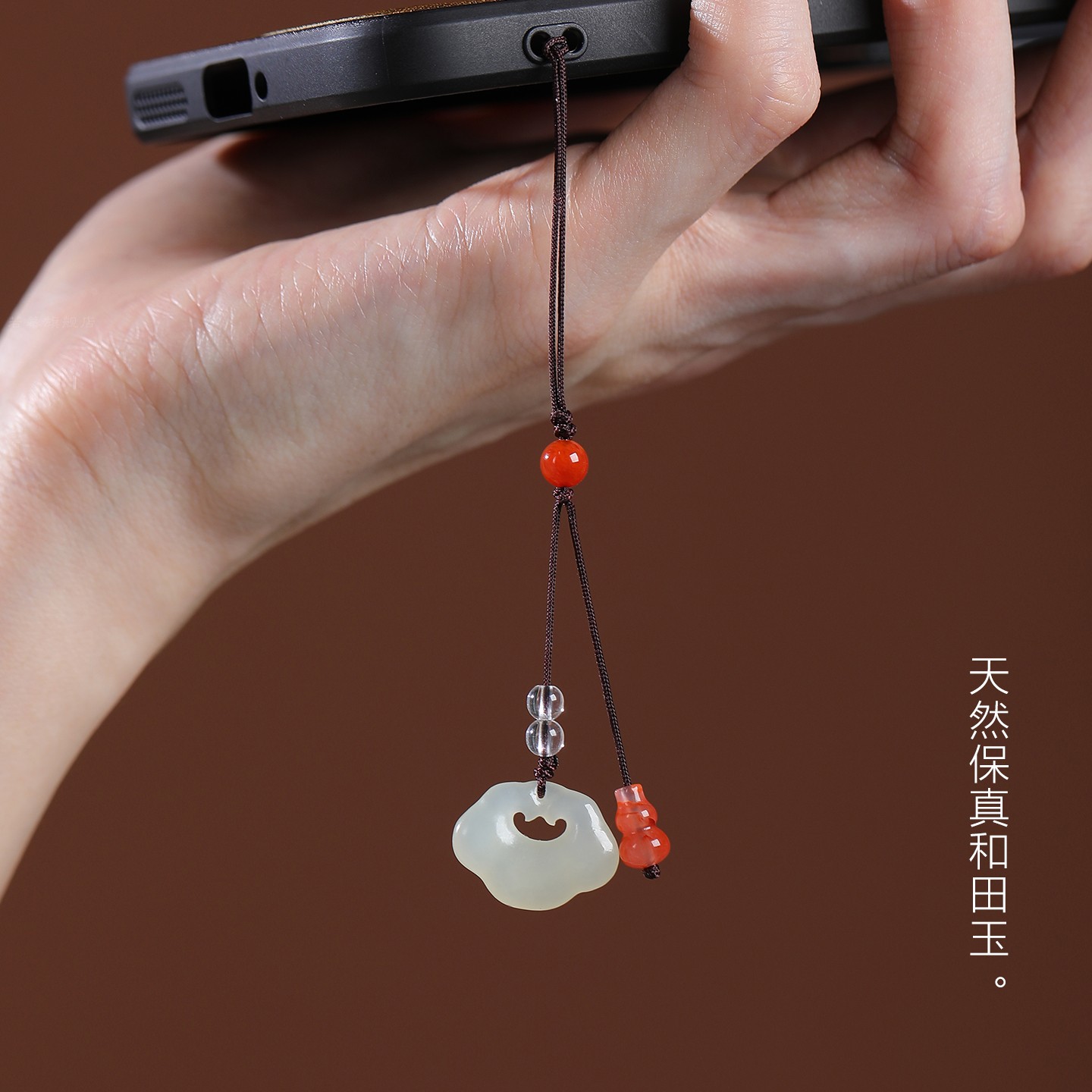 正品手工原创新中式平安如意锁手机链古风简约和田玉手机挂件挂饰