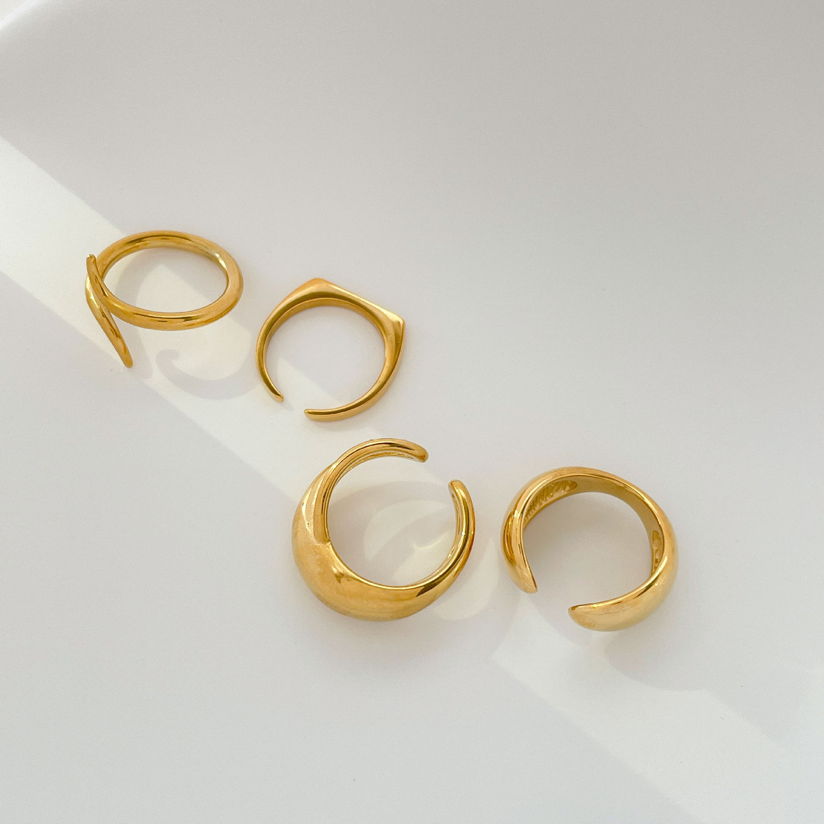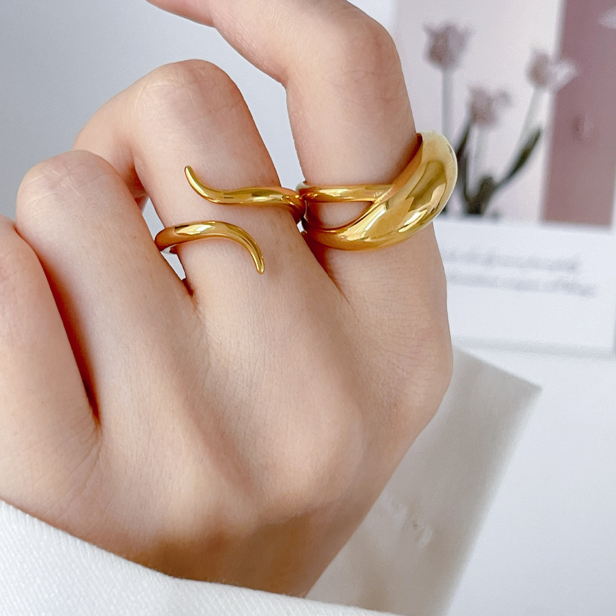 光面圆弧开口戒指蛇形设计D字镂空弧面指环时尚个性