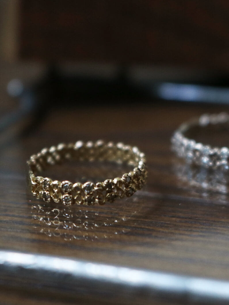 包税包邮日本代购noguchi23新手工蕾丝镂空钻石镶嵌复古锁链戒指