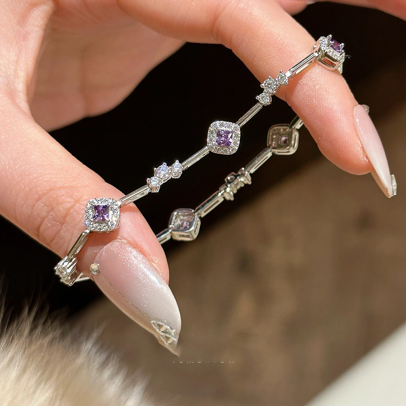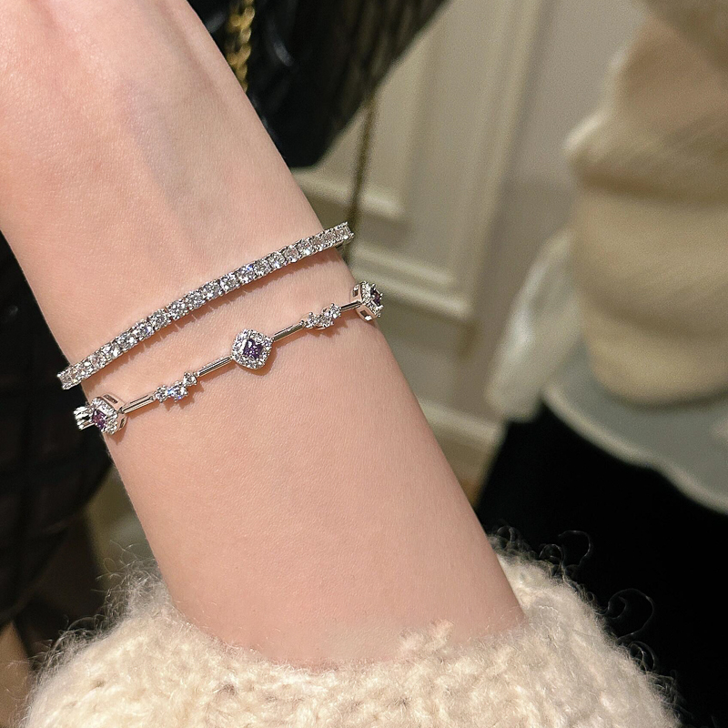 s925纯银紫色锆石手链女款高级感2025新款叠戴轻奢小众精致手饰