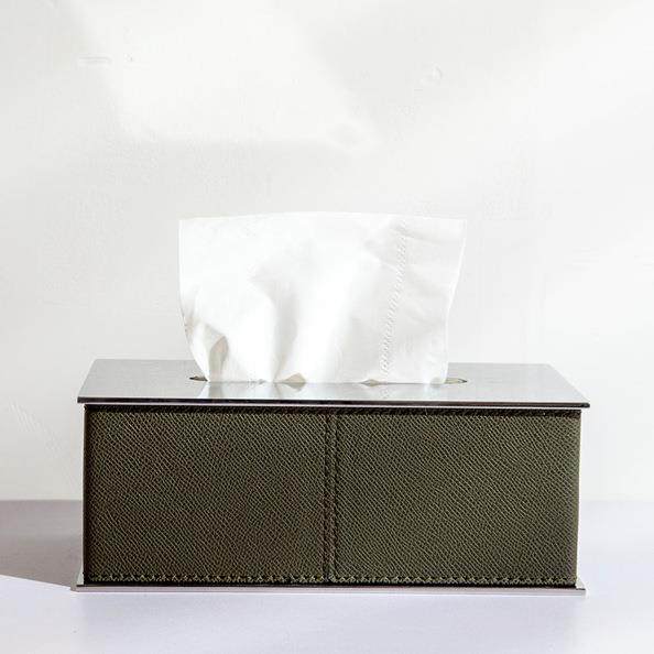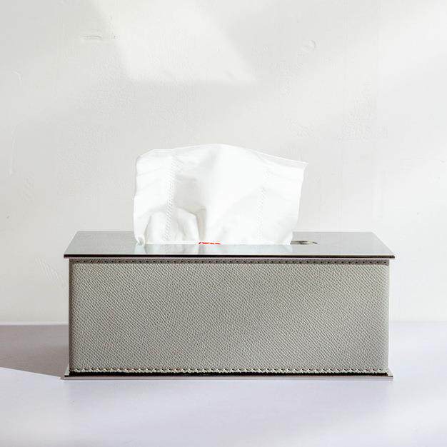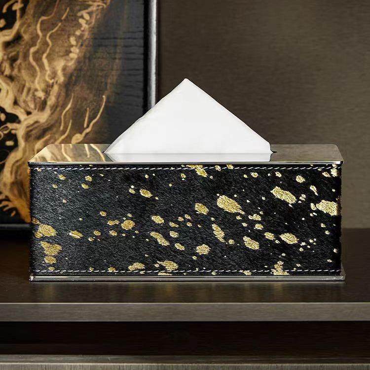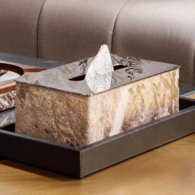 现代轻奢不锈钢马毛皮革纸巾盒创意样板间方抽纸盒餐桌茶几金属