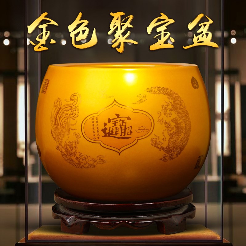 景德镇陶瓷聚宝盆摆件聚财客厅玄关鱼缸装饰招财进宝乔迁开业礼品