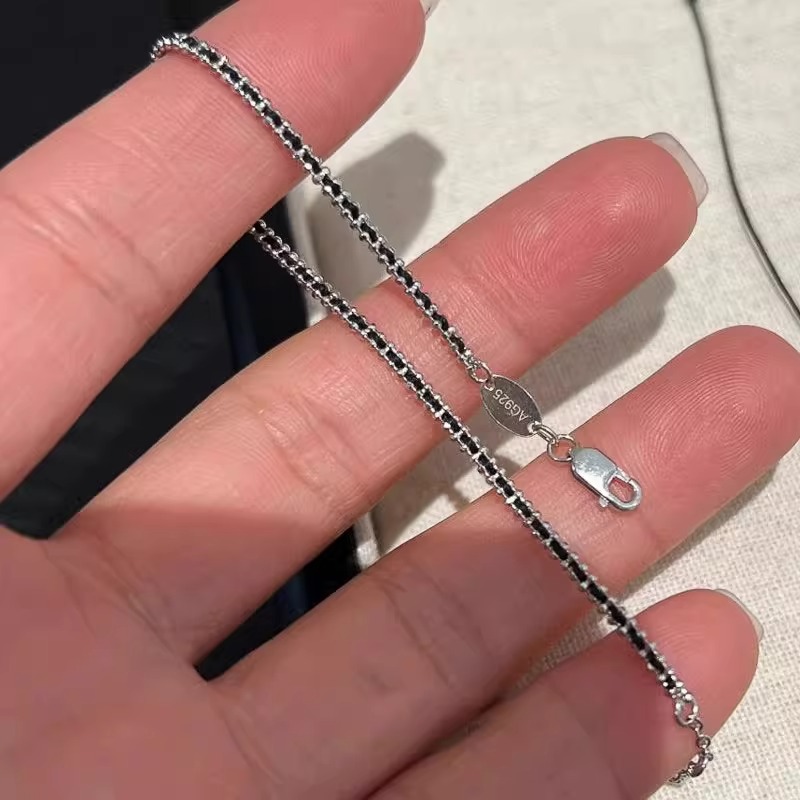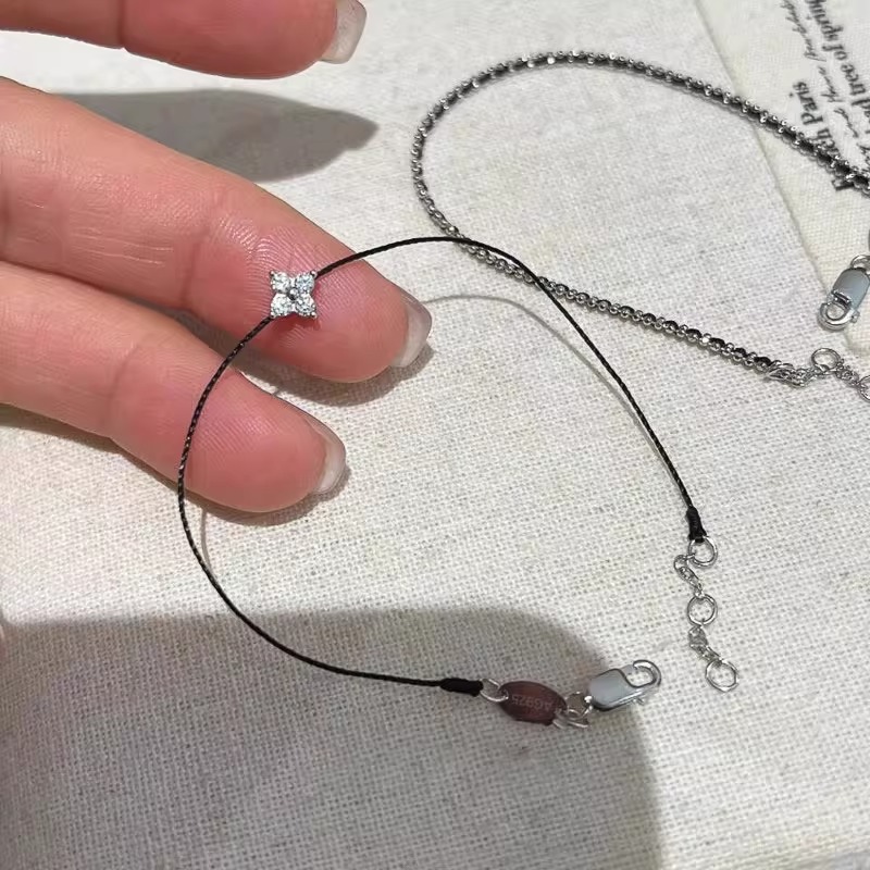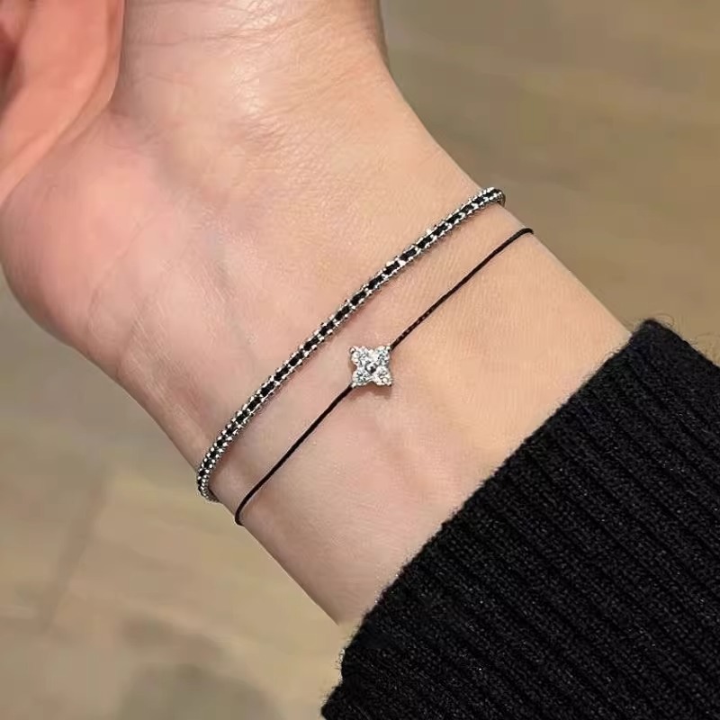 夏天叠戴四叶草细款黑色手绳女款编织手链轻奢小众精致高级感手饰