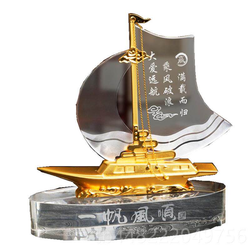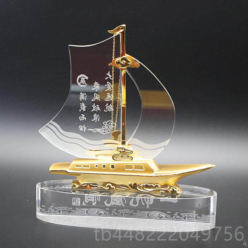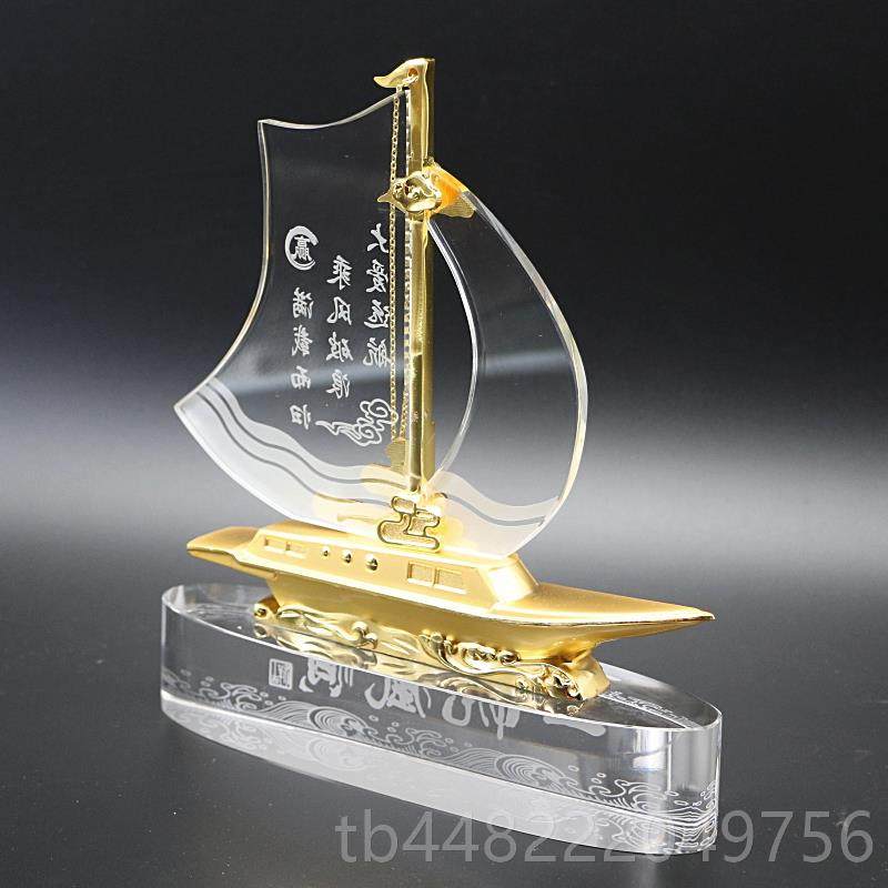 正品办公室水晶工艺品毕礼物念开业商定务礼纪品制业一帆风顺帆船