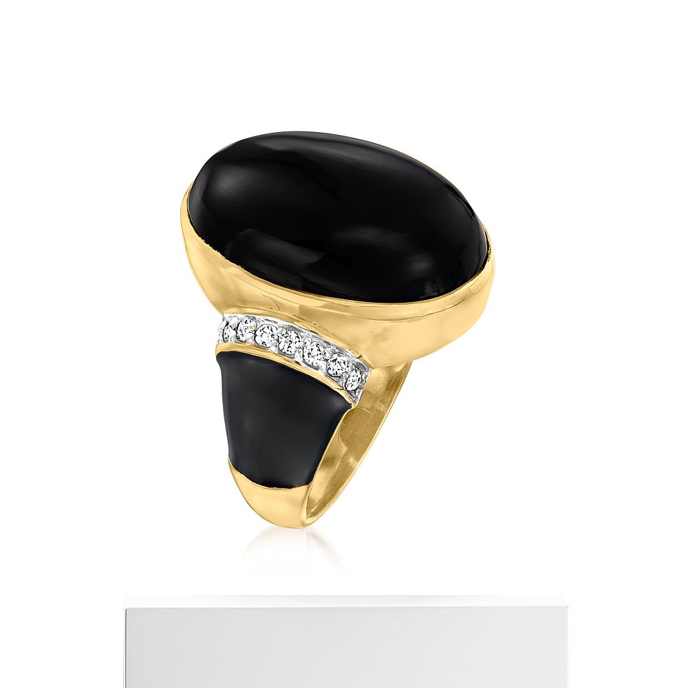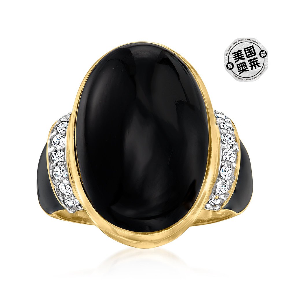 自营 Ross-Simons 黑玛瑙和钻石戒指 18 克拉金镀在纯银上黑色珐
